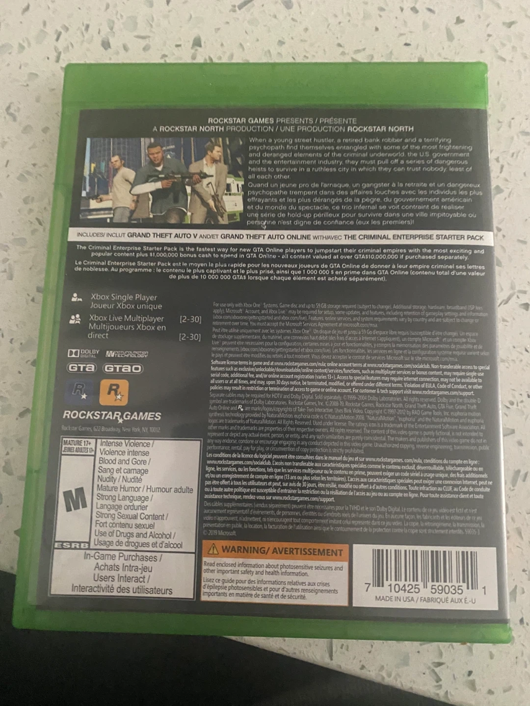 This is the Grand Theft Auto V Premium Edition for Xbox One. It includes the full story mode and the ever-evolving world of Grand Theft Auto Online. A digital gaming code may be required for download, so please check compatibility.