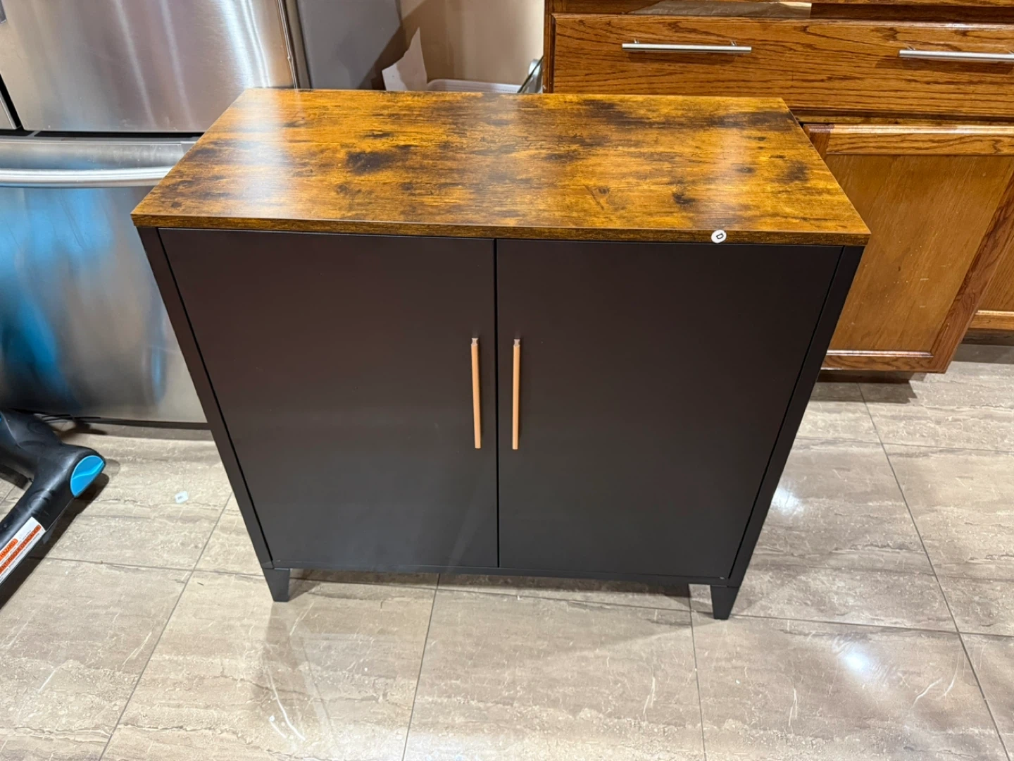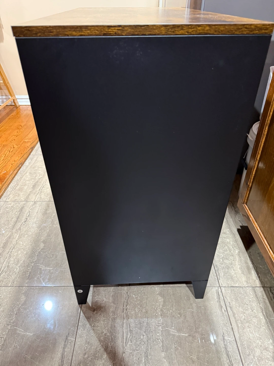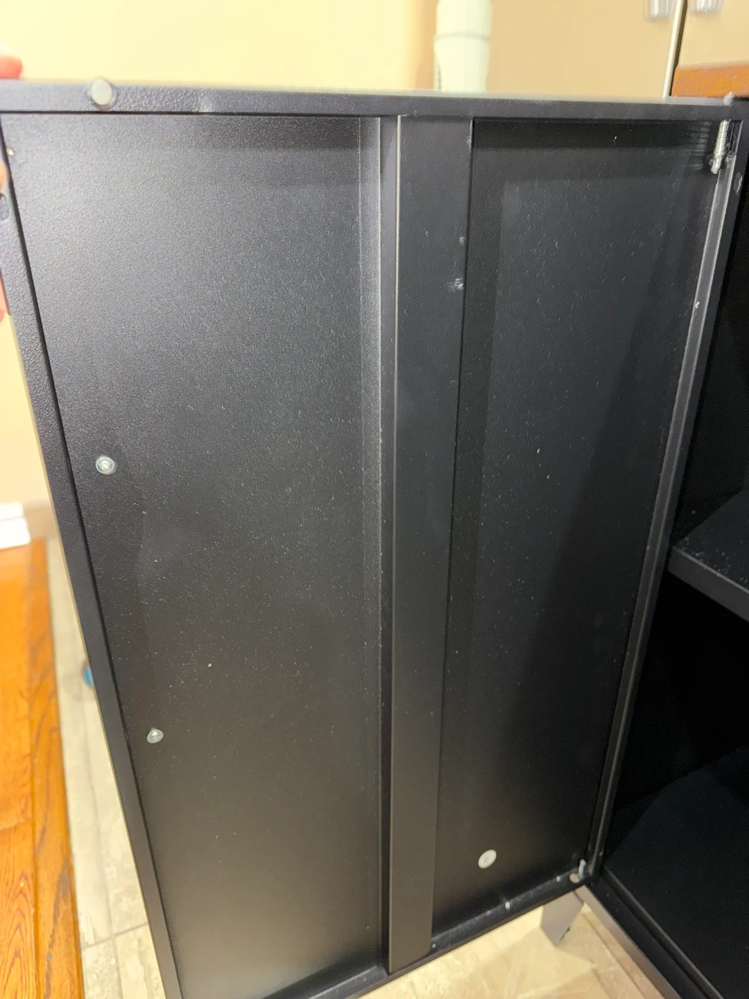 Black 2-Door Storage Cabinet with Wood Top
