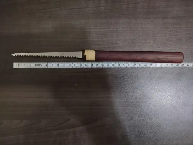 Japanese wood saw features paulownia handle. It is in the excellent condition, practically brand new. Blade length: 12 cm Handle: 18 cm Total length: 30 cm