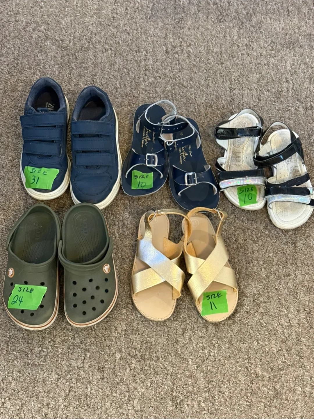 Cute gold criss-cross sandals for kids. Size 11. These are perfect for summer outings or everyday wear. Made with a faux leather material.