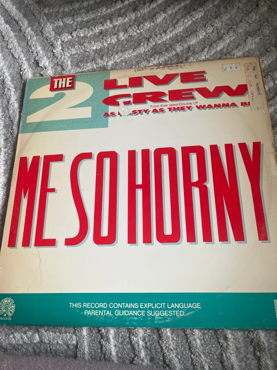 Here's the double LP Me So Horny by The 2 Live Crew. Explicit language is present on this record, and parental guidance is suggested. This is a classic hip-hop album.