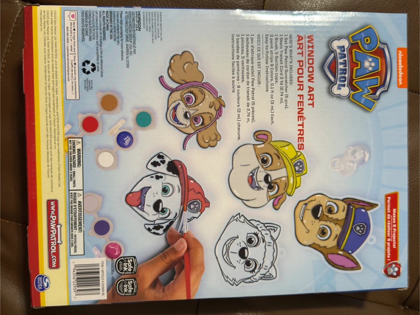 This Paw Patrol window art kit lets you create 5 awesome projects. It includes 5 Paw Patrol suncatchers, a brush, suction cups, and 9 paint colours. Easy-to-follow instructions are included.