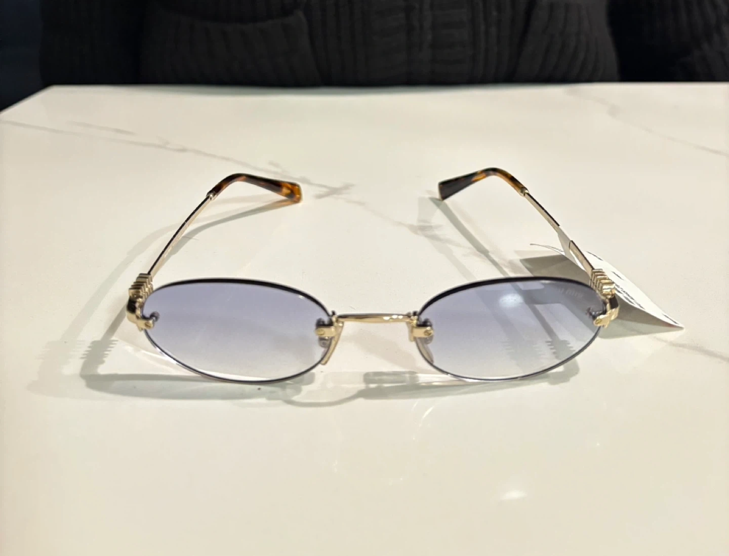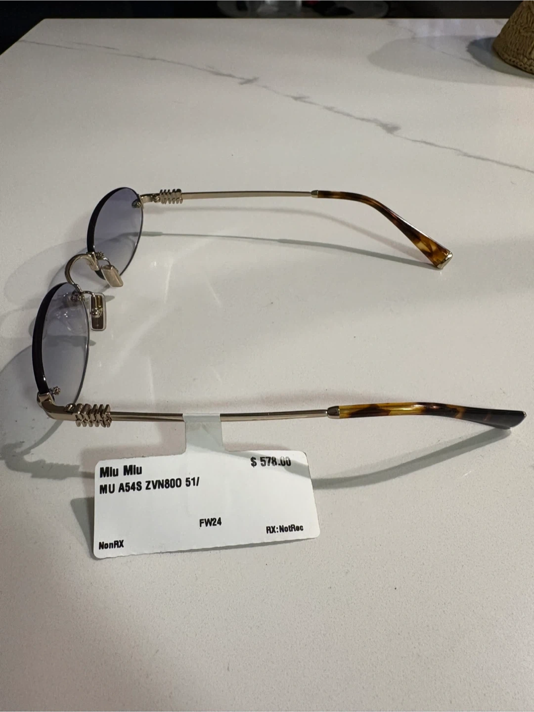 Selling a pair of Miu Miu sunglasses, model MU A54S ZVN800. These stylish sunglasses feature a unique design and are in great condition. They originally retailed for $578.00.
