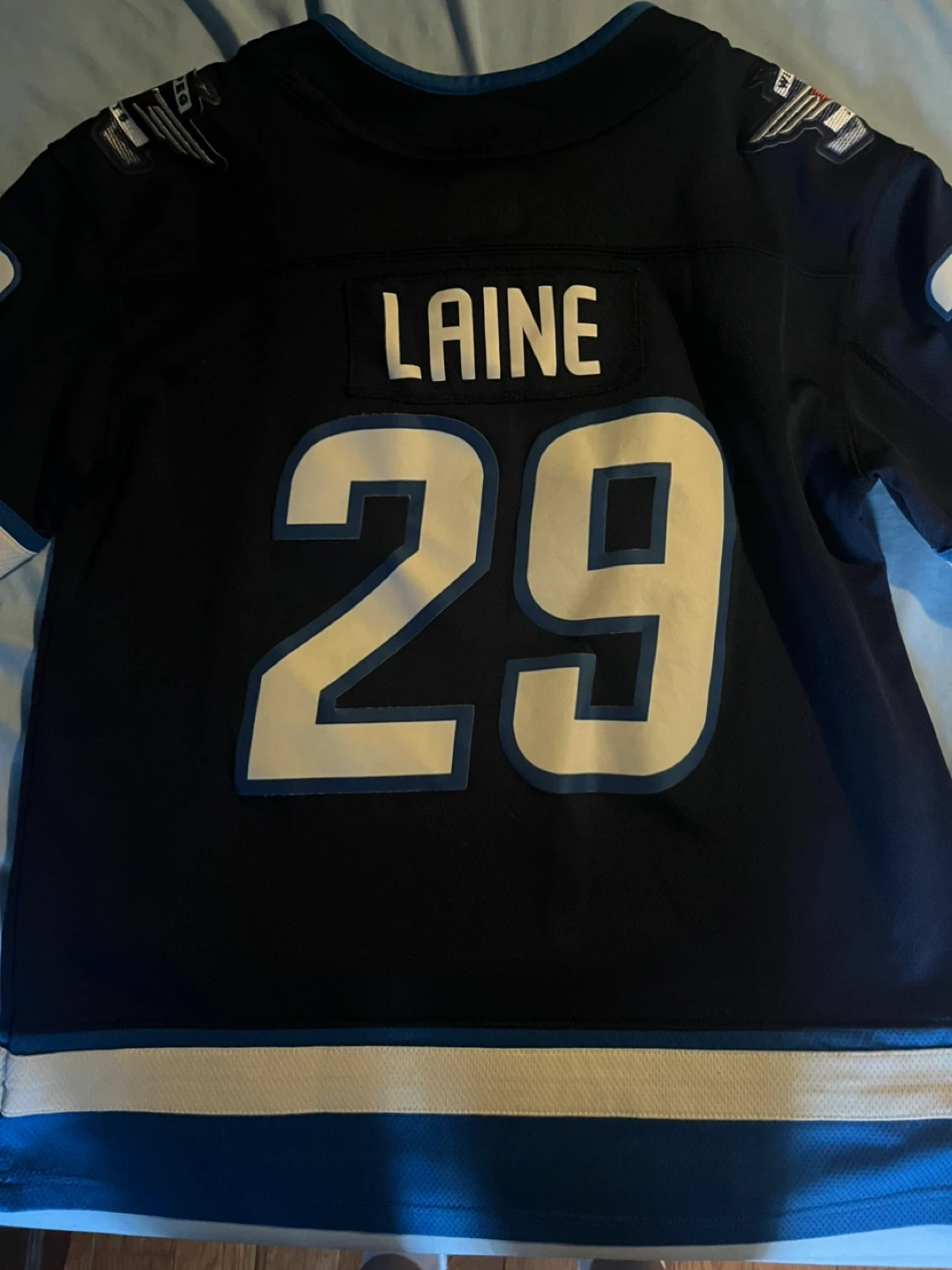 These are an officially licensed Winnipeg Jets hockey jerseys by Fanatics. It's a size Lg mens and xtra lg kids. The jerseys features "Laine" and the number "29" on the back. $50.00 each or both for $100.00