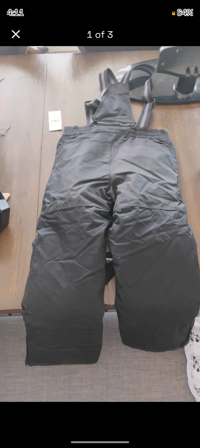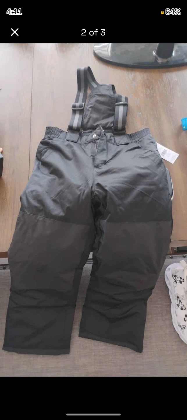 Girls' snow pants in black, size M/M (7-8). These bib-style snow pants are made for winter play. They're insulated for warmth. Perfect for staying cozy during outdoor activities. Asking 10$