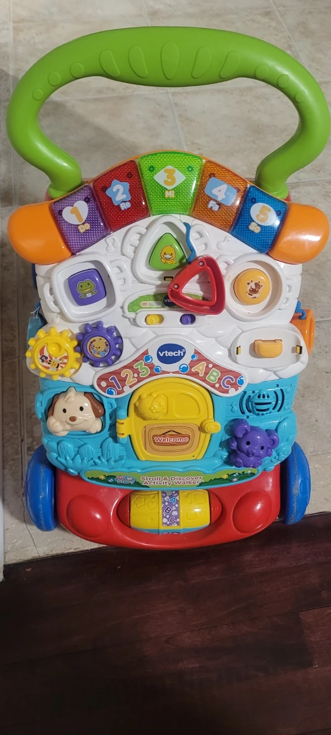 This VTech Sit-to-Stand Learning Walker is designed to grow with your child. It offers interactive activities for floor play and encourages them to walk. It's great for early development!