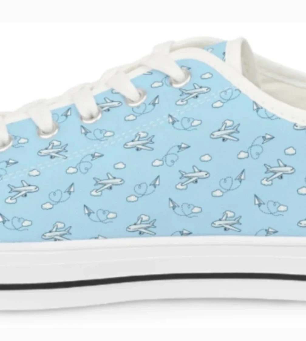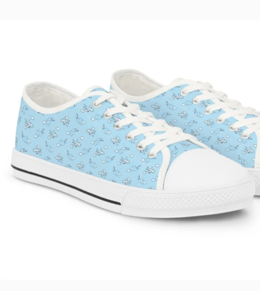 Light Blue Low-Top Sneakers with Airplane Print