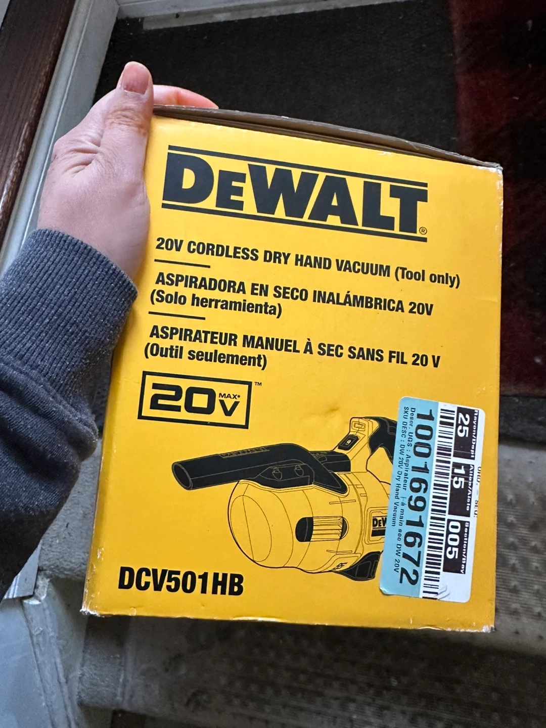 This is a DEWALT 20V cordless dry hand vacuum. It's the tool only, so battery and charger are sold separately. This is handy for quick cleanups around the house or in the workshop.