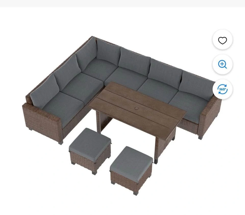 Ottomans store under table when not needed. Knock-down design makes storage a snap. Includes protective furniture covers. Use with a standard umbrella (sold separately). Shell: 50% Recycled polyester. Coordinates with other pieces in the Brookbury patio collection (sold separately). Complete 22 piece set includes (1) Left Arm 3 Seater, (1) Corner 3 Seater, 2 Ottomans, 1 Coffee Table, 7 Back Cushions, 8 Seat Cushions & 2 Patio Covers. Left Arm 3 Seater measures 74 in. W x 27.6 in. D x 29.3 in. H. Corner 3 Seater measures 78.3 in. W x 27.6 in. D x 29.3 in. H. Ottomans measure 18.1 in. W x 18.1 in. D x 12.9 in. H. Coffee Table measures 27 in. W x 53.5 in. D x 26.8 in. H. Overall product weight: 182.5 lbs