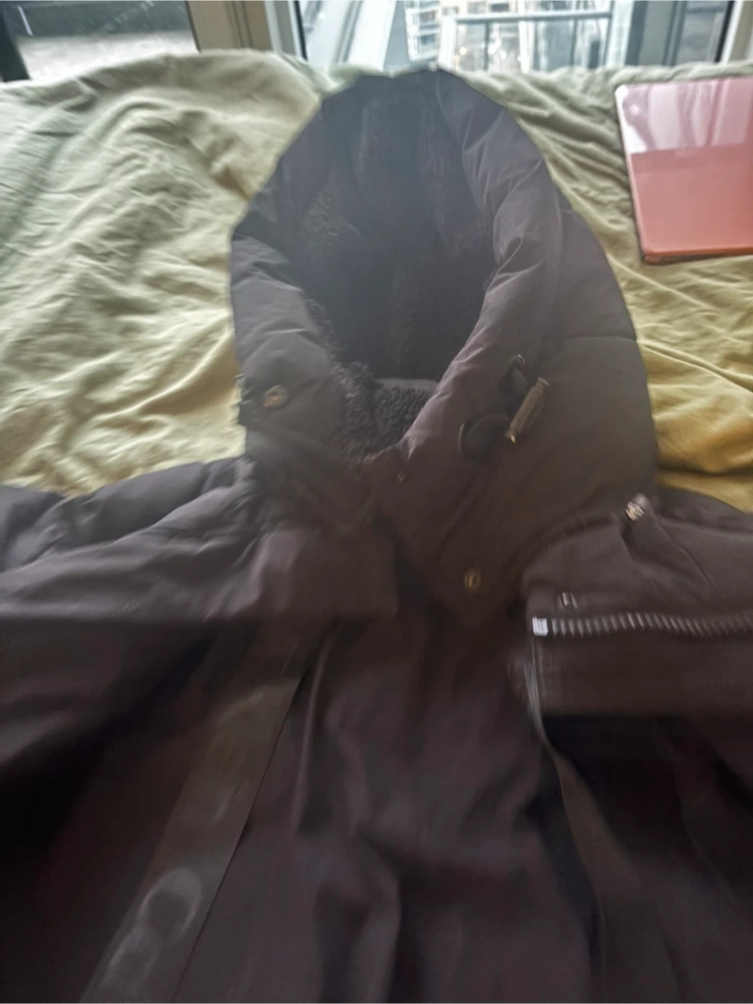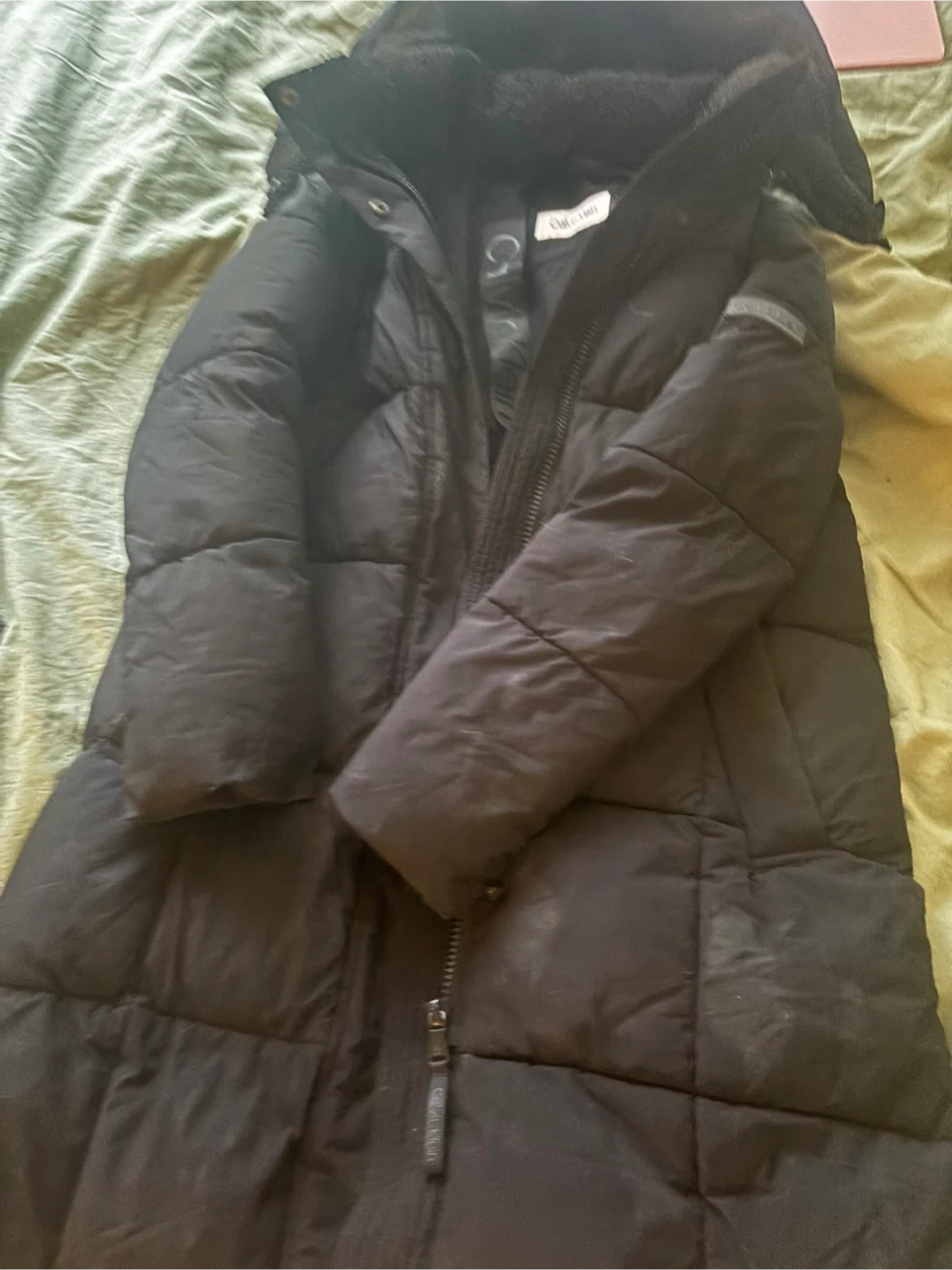 Warm and stylish Calvin Klein long puffer jacket with cozy faux-fur/sherpa interior around the hood. Thick, durable, and perfect for Canadian winters. Zipper works great, minimal wear. I love this jacket but I want to get add a different style in my collection.