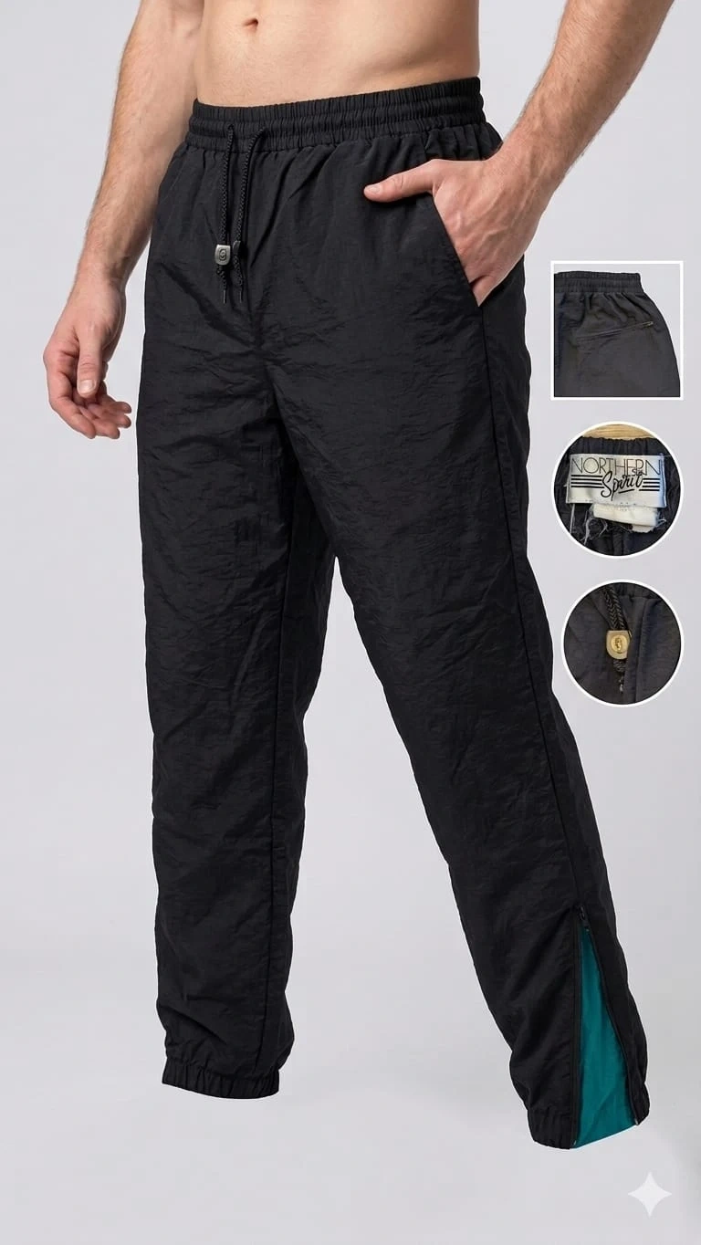 Great pair of vintage 90s Northern Spirit windbreaker pants. High-quality nylon construction with that classic "swish" sound.