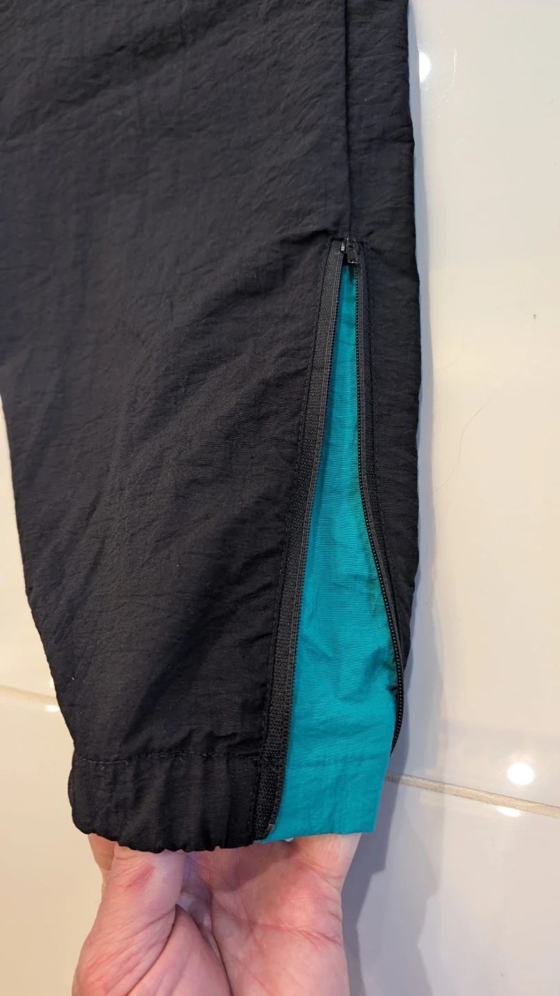 Vintage Northern Spirit Nylon Track Pants - Black/Teal - Size Medium