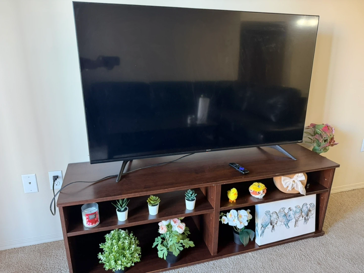 Hisense 65 inch Smart TV and Tv table both for $350.