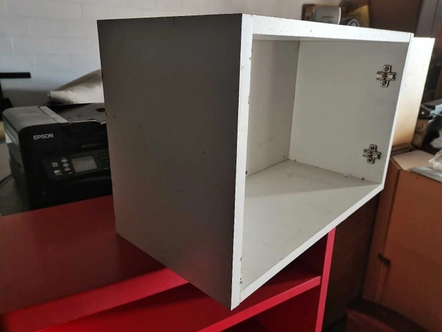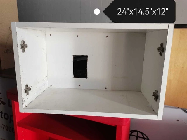 This white cabinet measures 24 inches in length, 14.5 inches in width and 12 inches in depth, offering a compact storage solution. Being a used item, it comes with a bit of character, ready to blend into your space or be upcycled into something new. No door, has predrill holes into the wall. Here are the specs: * Length: 24 inches * Width: 14.5 inches * Depth: 12 inches. PU near Chinook station