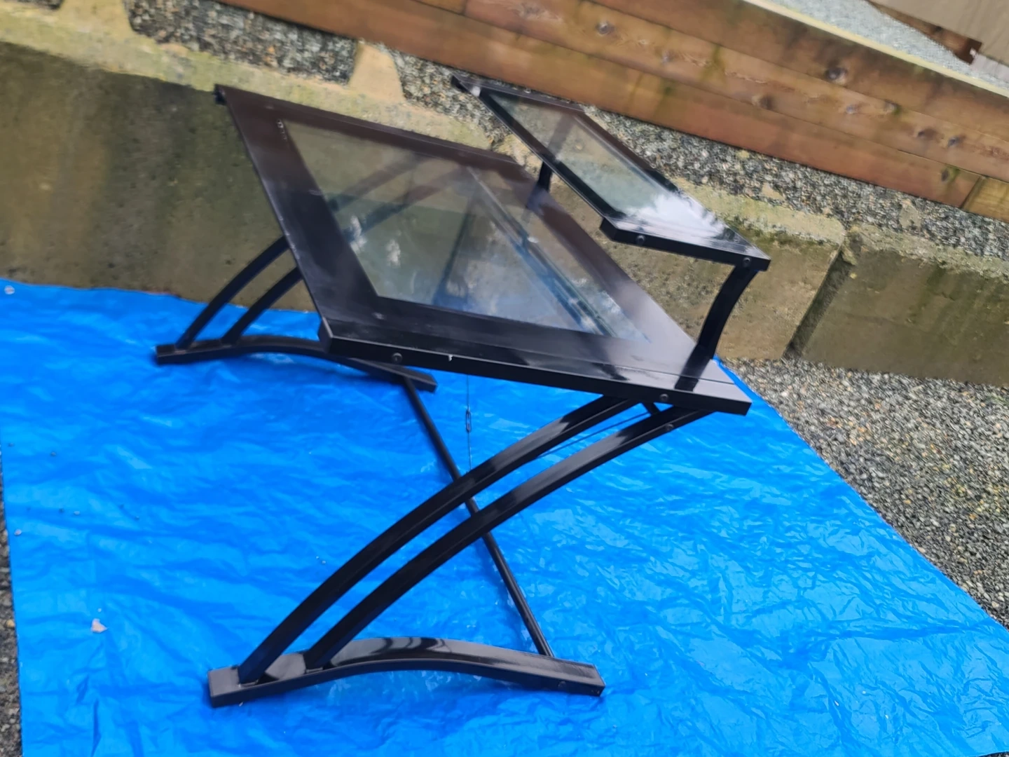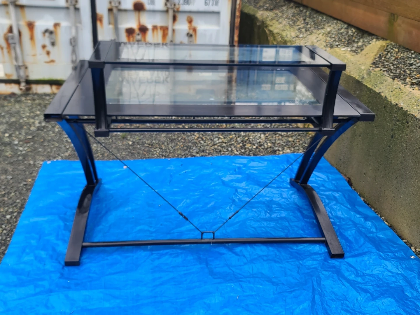 Drafting table with a sleek black frame and glass top. It features a smaller, elevated glass section as well. The table is in good condition and ready for your creative projects. Measurements to follow. Delivery can be arranged. Viewing and pickup by appointment.