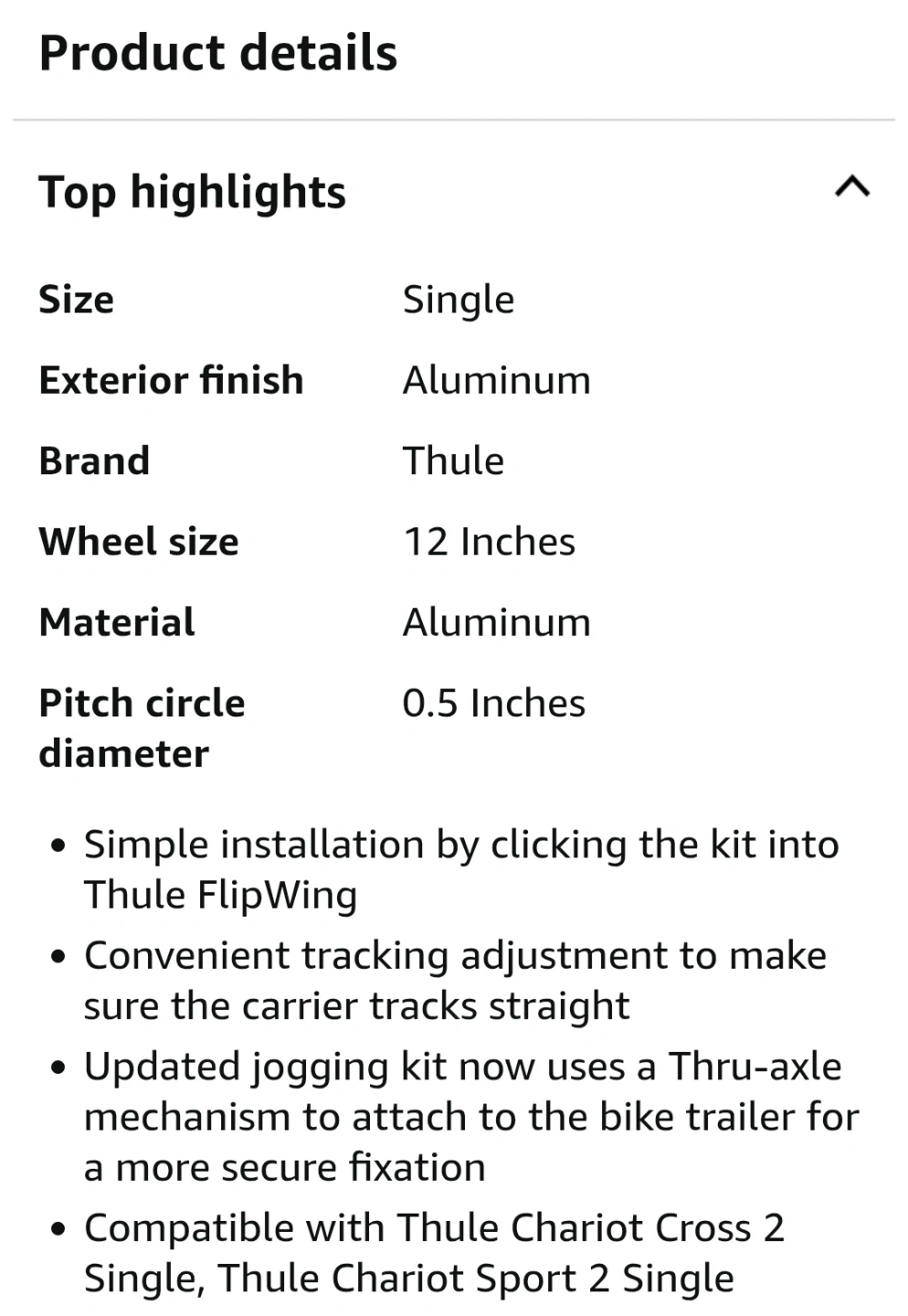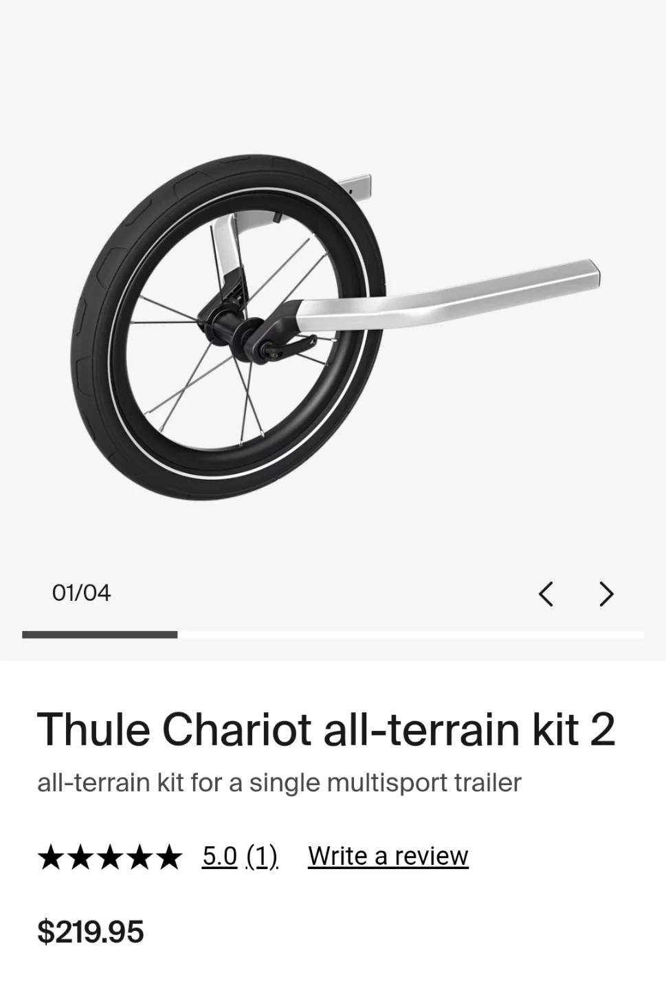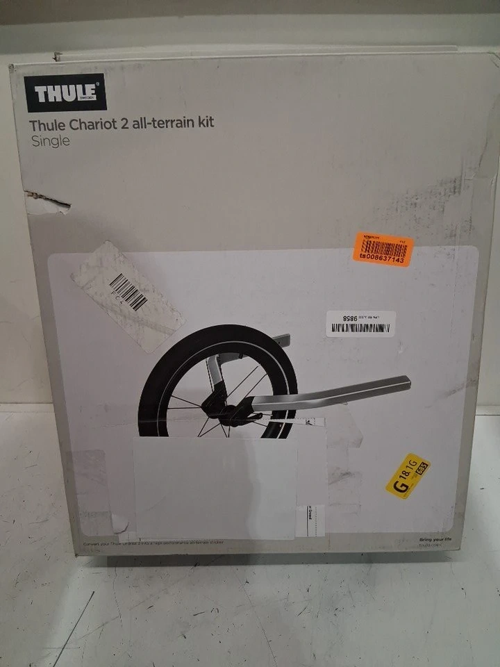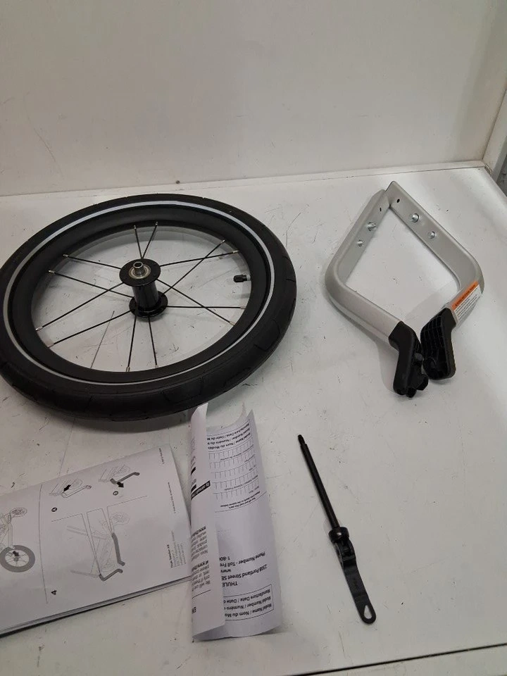Get ready to roll with this Thule Chariot jog kit, featuring a sturdy aluminum frame and a 12-inch wheel for smooth all-terrain adventures! I'm selling a Thule Chariot all-terrain kit 2, but it's missing the nut for one part of the quick axle. Other than that, it is in excellent condition. ππ