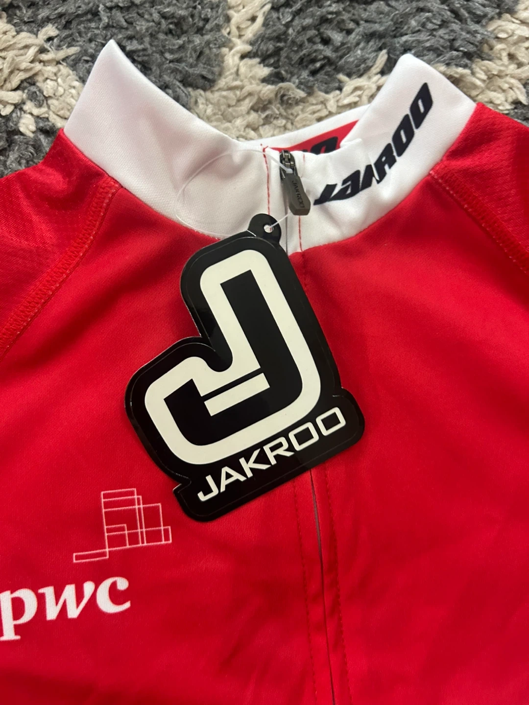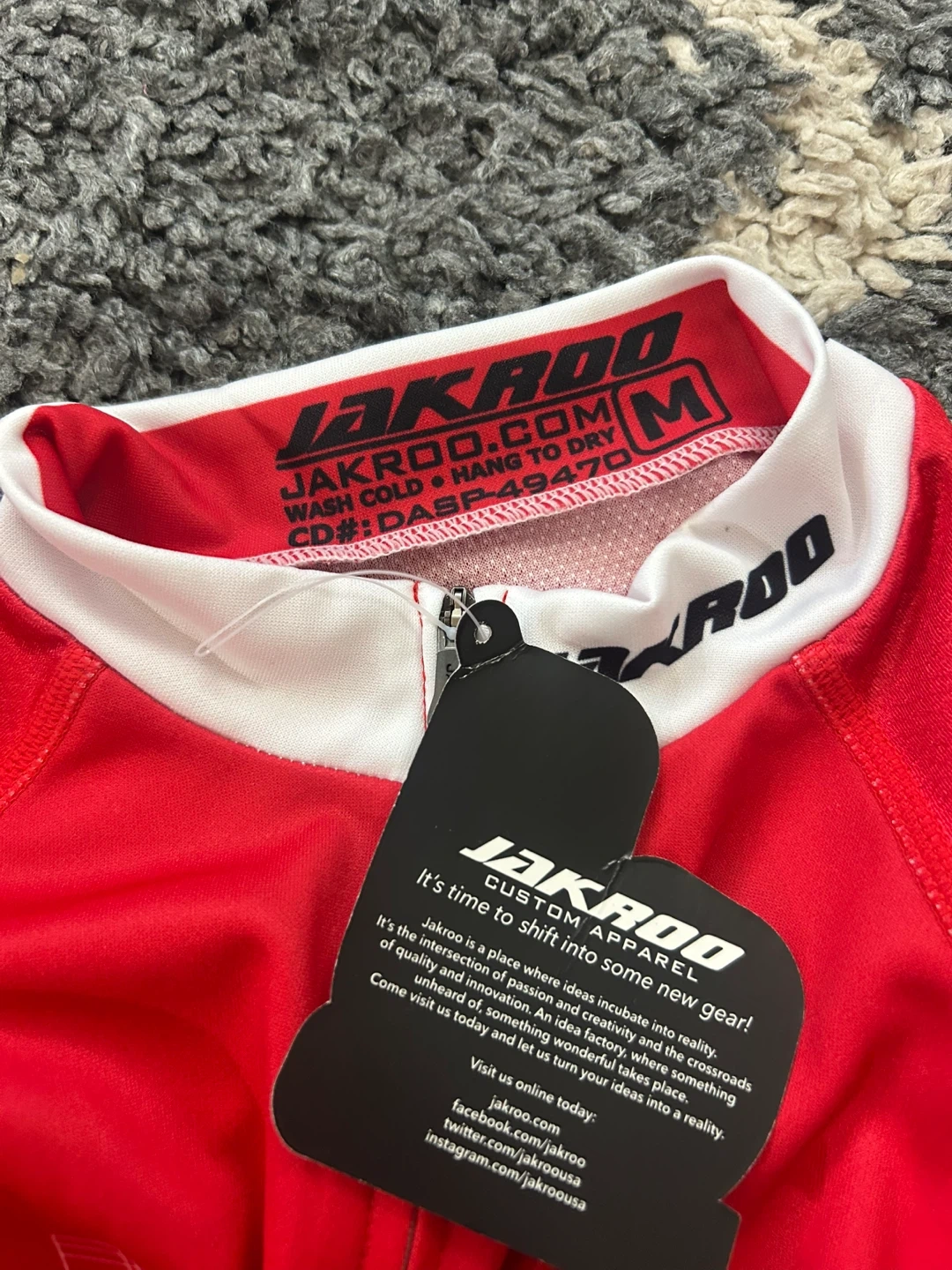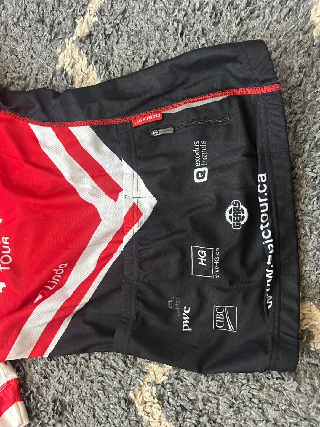 JAKROO cycling jersey for the GTA GranFondo tour. It's a size medium with a full-zip front and three back pockets. Breathable, quick-dry fabric.