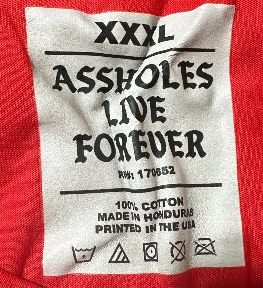 Brand new XXXL T-shirt from Assholes Live Forever. Resembling a name brand, this one is a classic. Asking only $10. Smoke free home. Check out my other ads. Pick up in Hespeler, Cambridge.