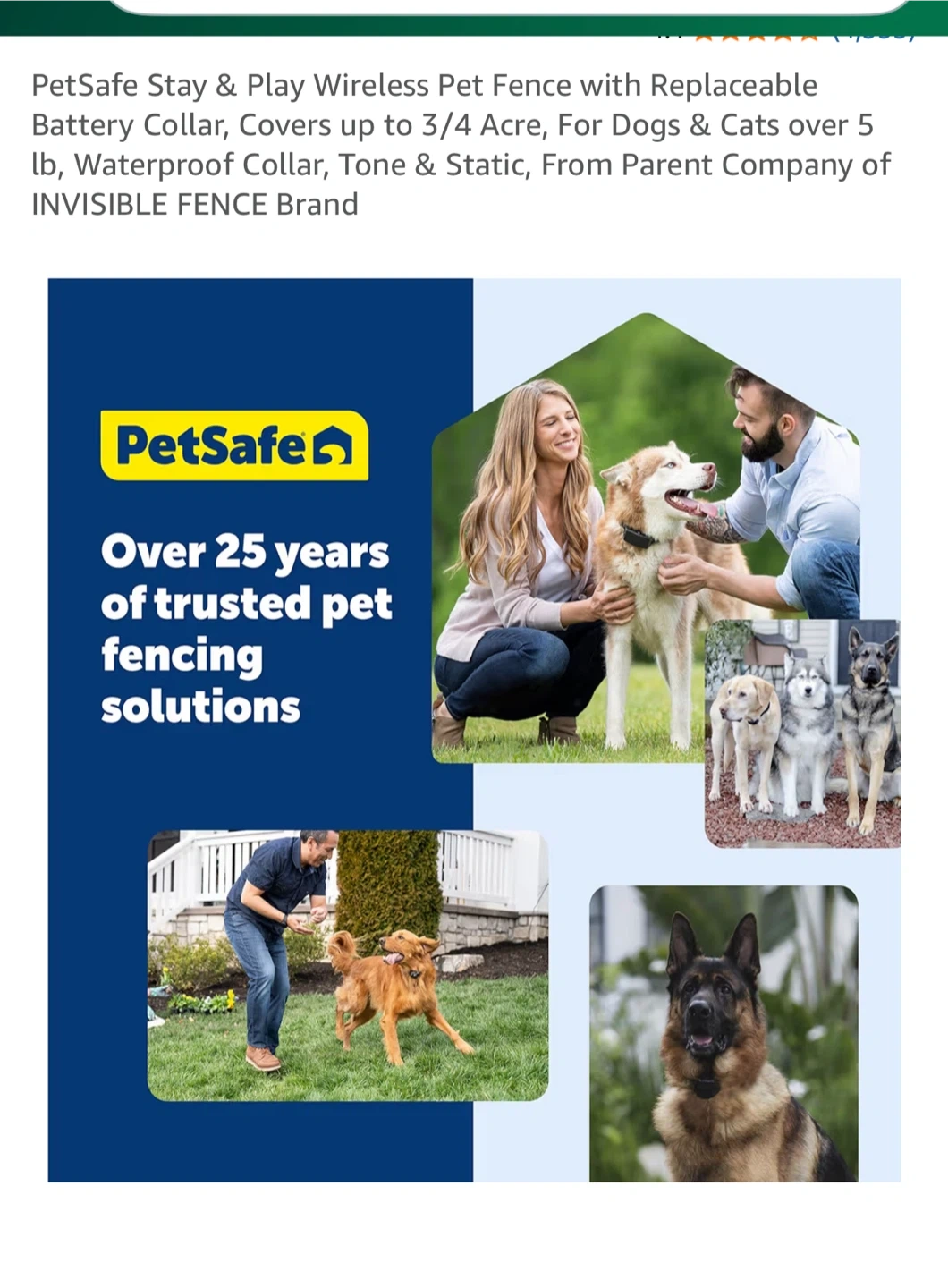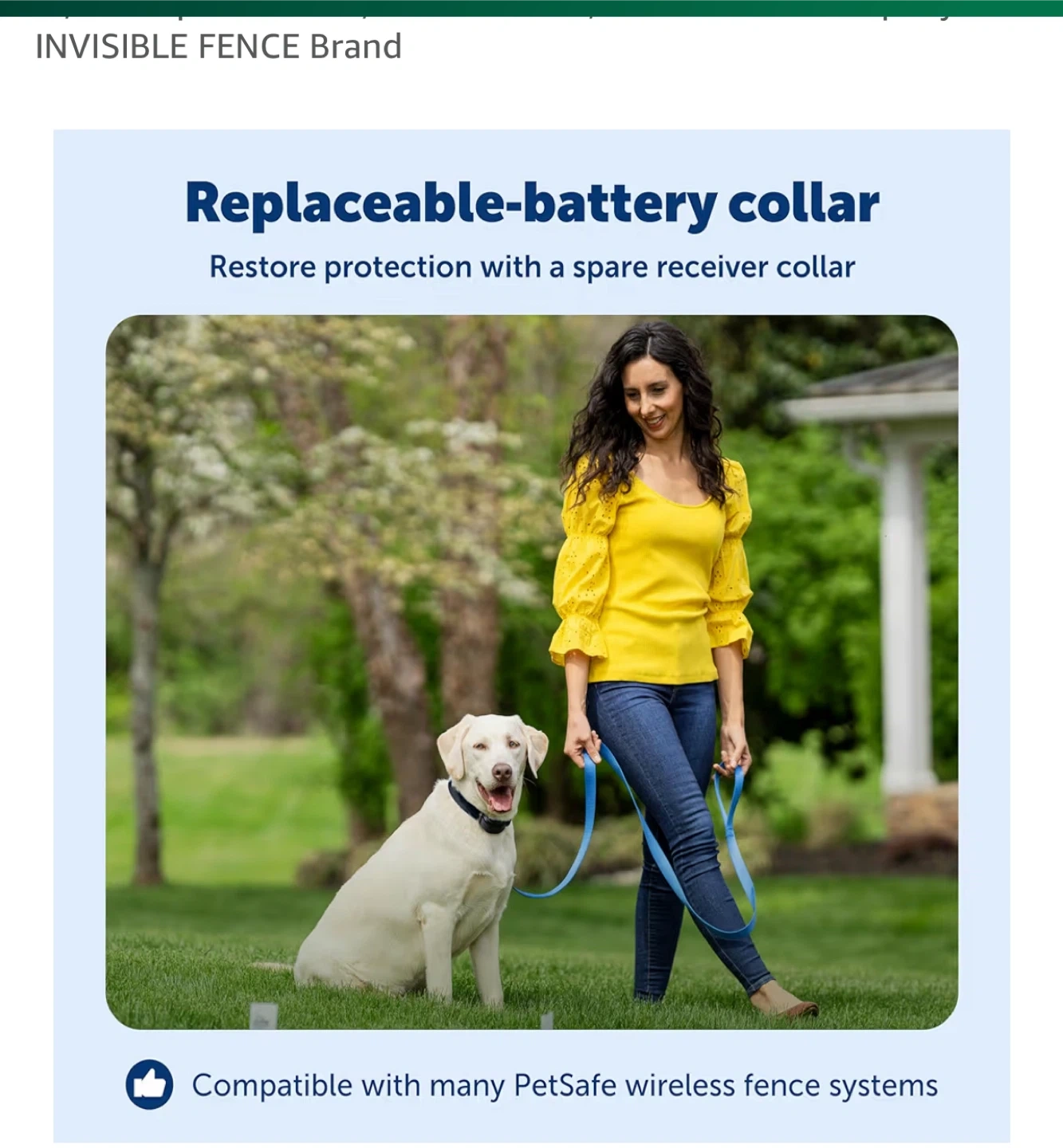 This is a PetSafe waterproof, adjustable, and ergonomic collar for your dog. It's a durable collar for secure playtime and is ideal for outdoor activities. It fits pets 5 lb and up, neck sizes 6-28 inch. Customize corrections for your dog’s temperament. It also has a replaceable battery with 1-2 months of battery life