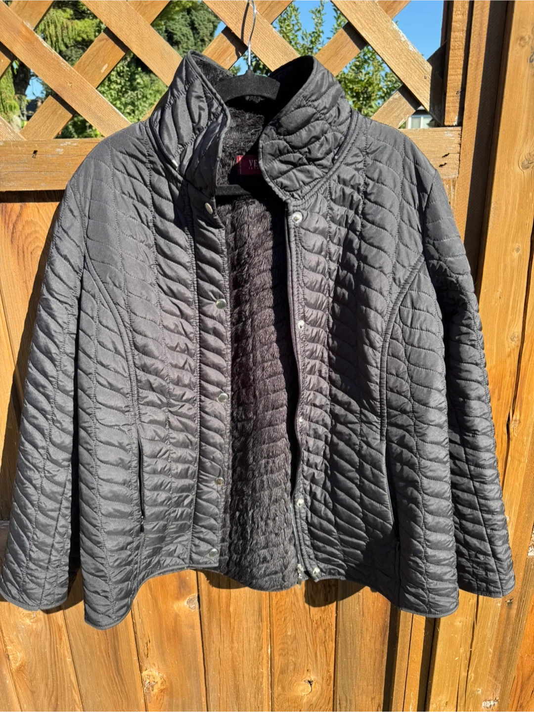 21Cozy up in this stylish Vedat Istanbul quilted jacket! It's a sleek black colour and features a soft, furry lining for extra warmth. The size is 46. Perfect for those chilly Canadian days!