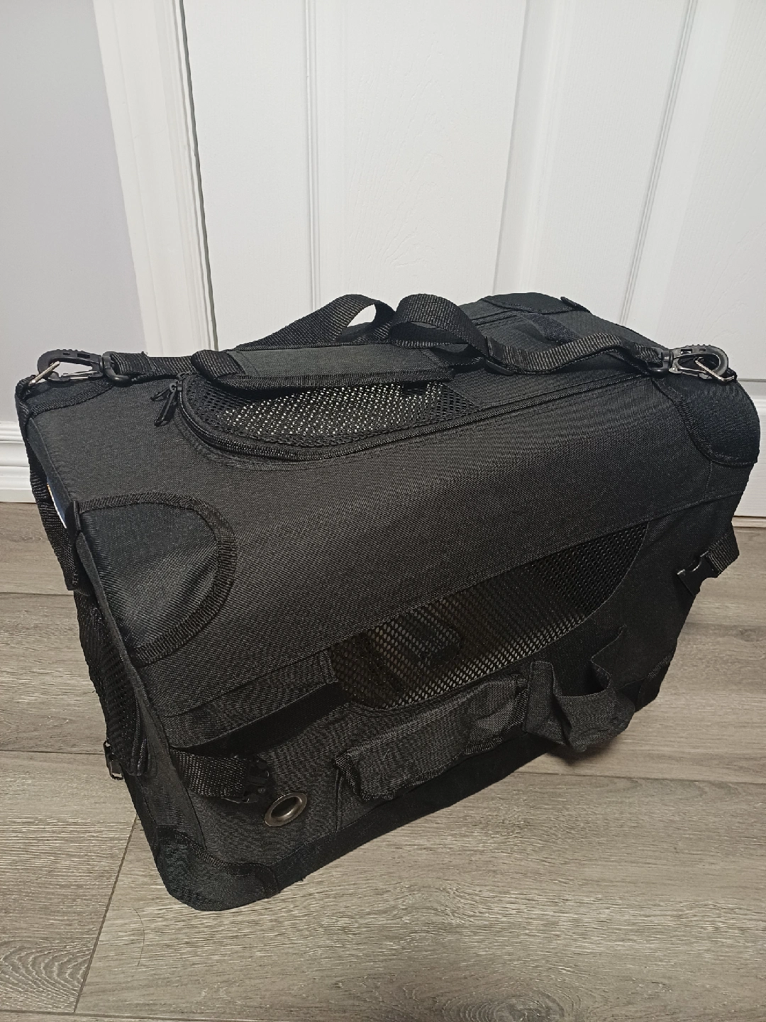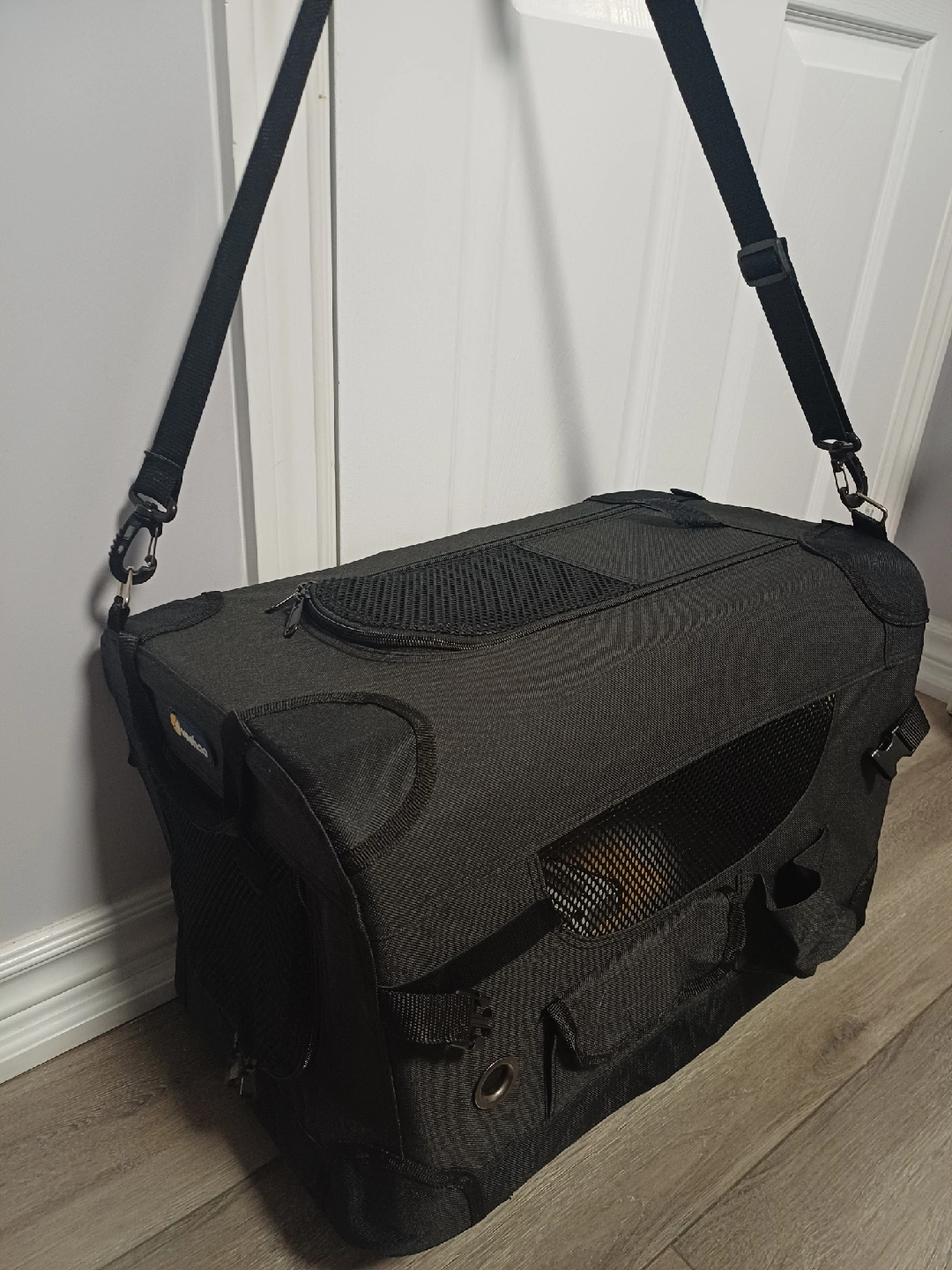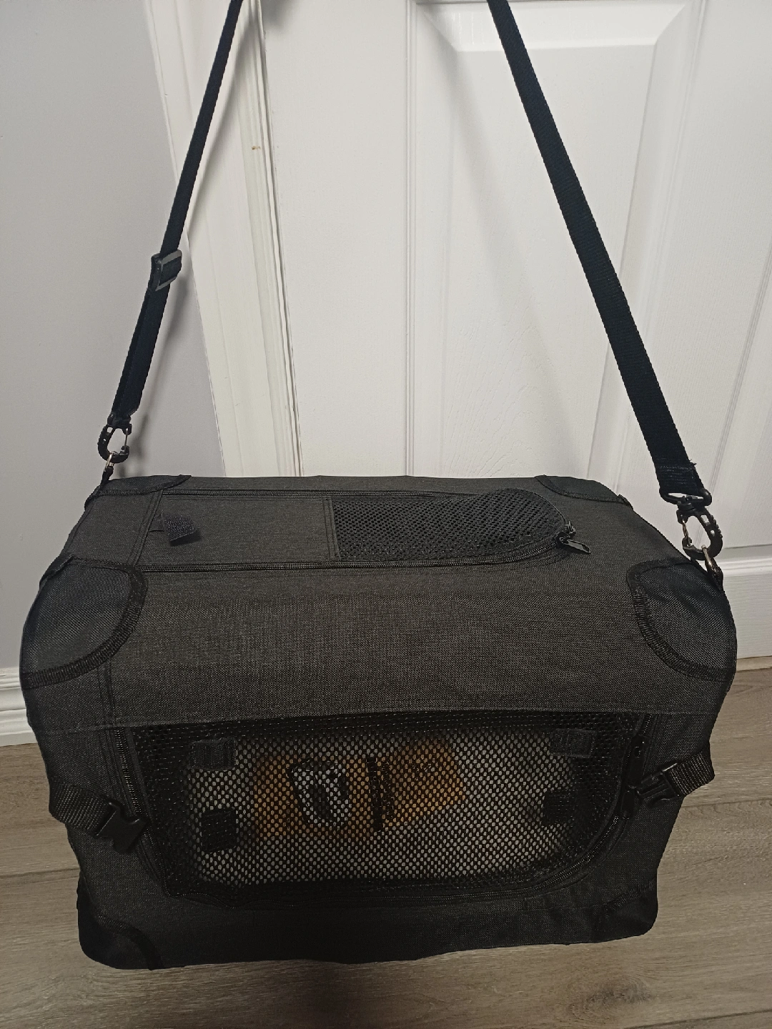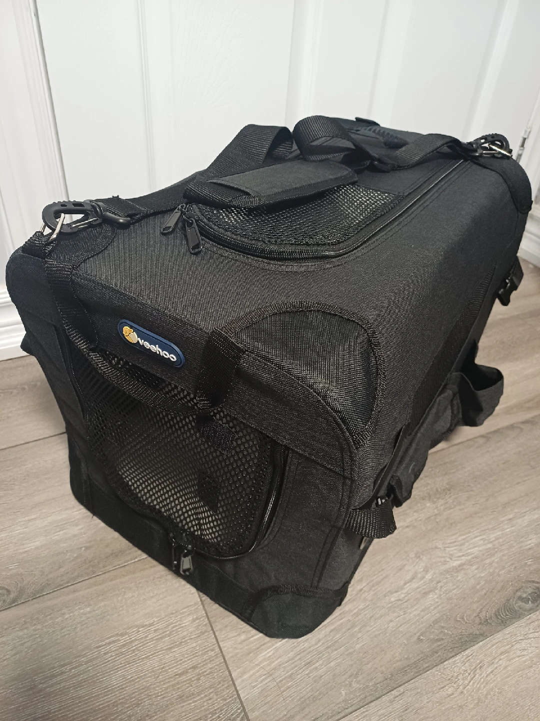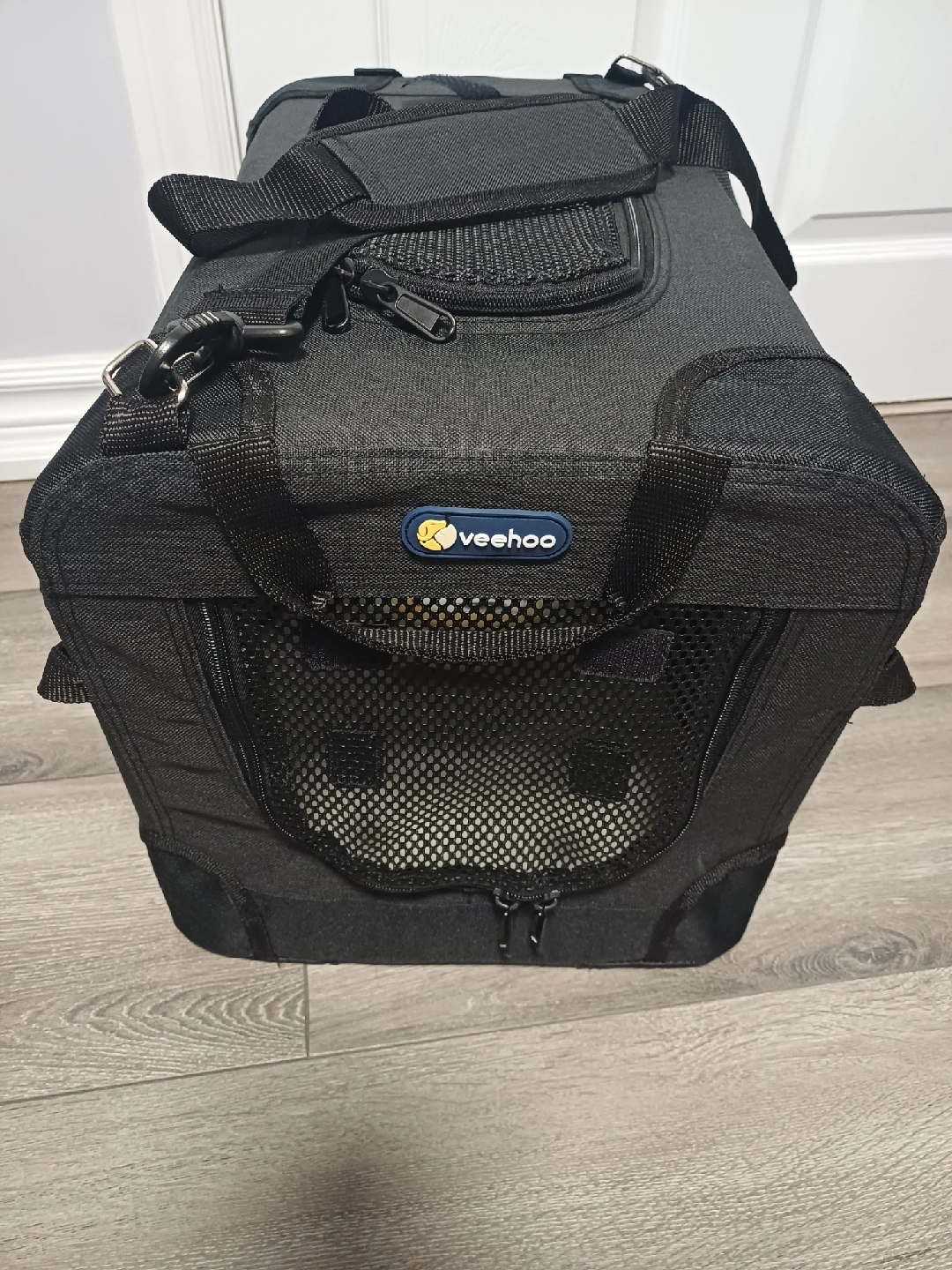 107Selling a Brand New and Never used... Heavy duty...Veehoo pet carrier/foldable crate in black. It's in great condition and ready for your furry friend's adventures! It features mesh windows for ventilation and visibility, plus a convenient shoulder strap for easy carrying. Easy to set-up and fold making it perfect for travel or home use. Size: 20x13x13 Available in 3 colors: Black, Blue, Brown.