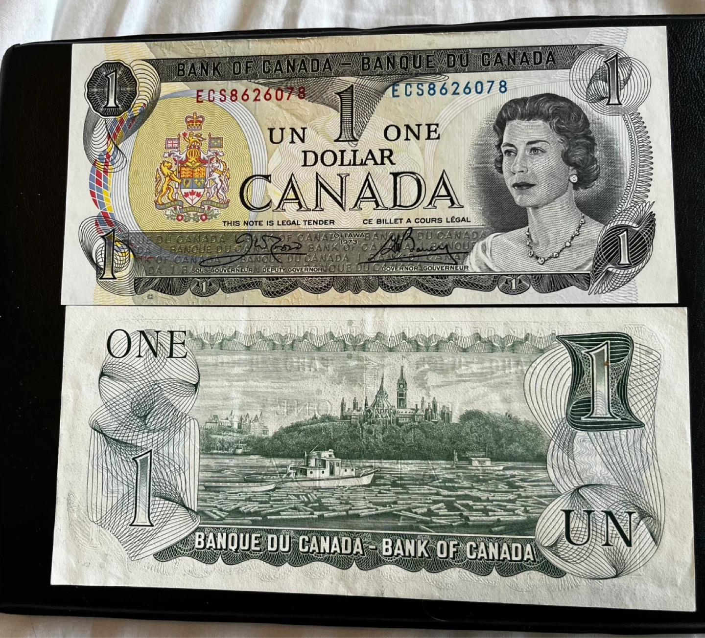 This item is a collectible 1973 Canadian One Dollar Banknote.