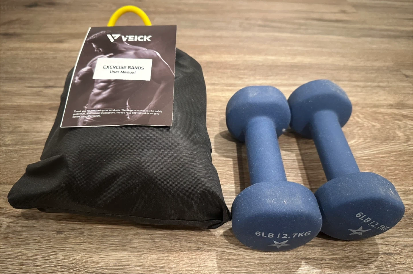 12Selling a pair of Veick dumbbells, each weighing 6 lb (2.7 kg). They come with a user manual for exercise bands. Perfect for your home workout routine!