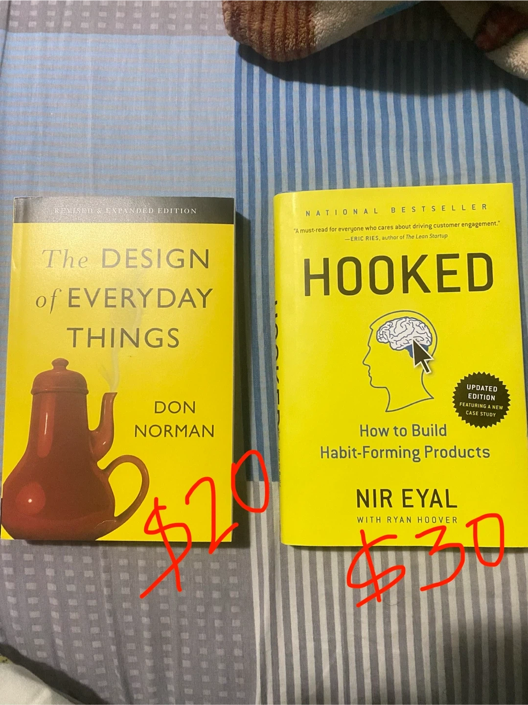 Two Brand new popular books, 'The Design of Everyday Things' by Don Norman and 'Hooked: How to Build Habit-Forming Products' by Nir Eyal. Revised and expanded editions.