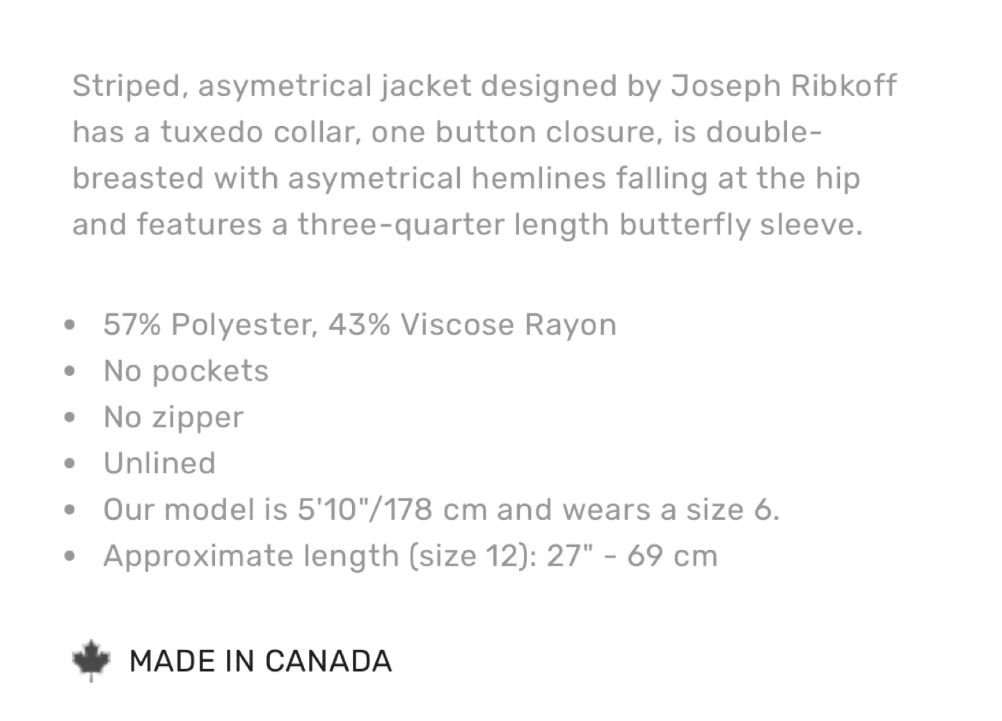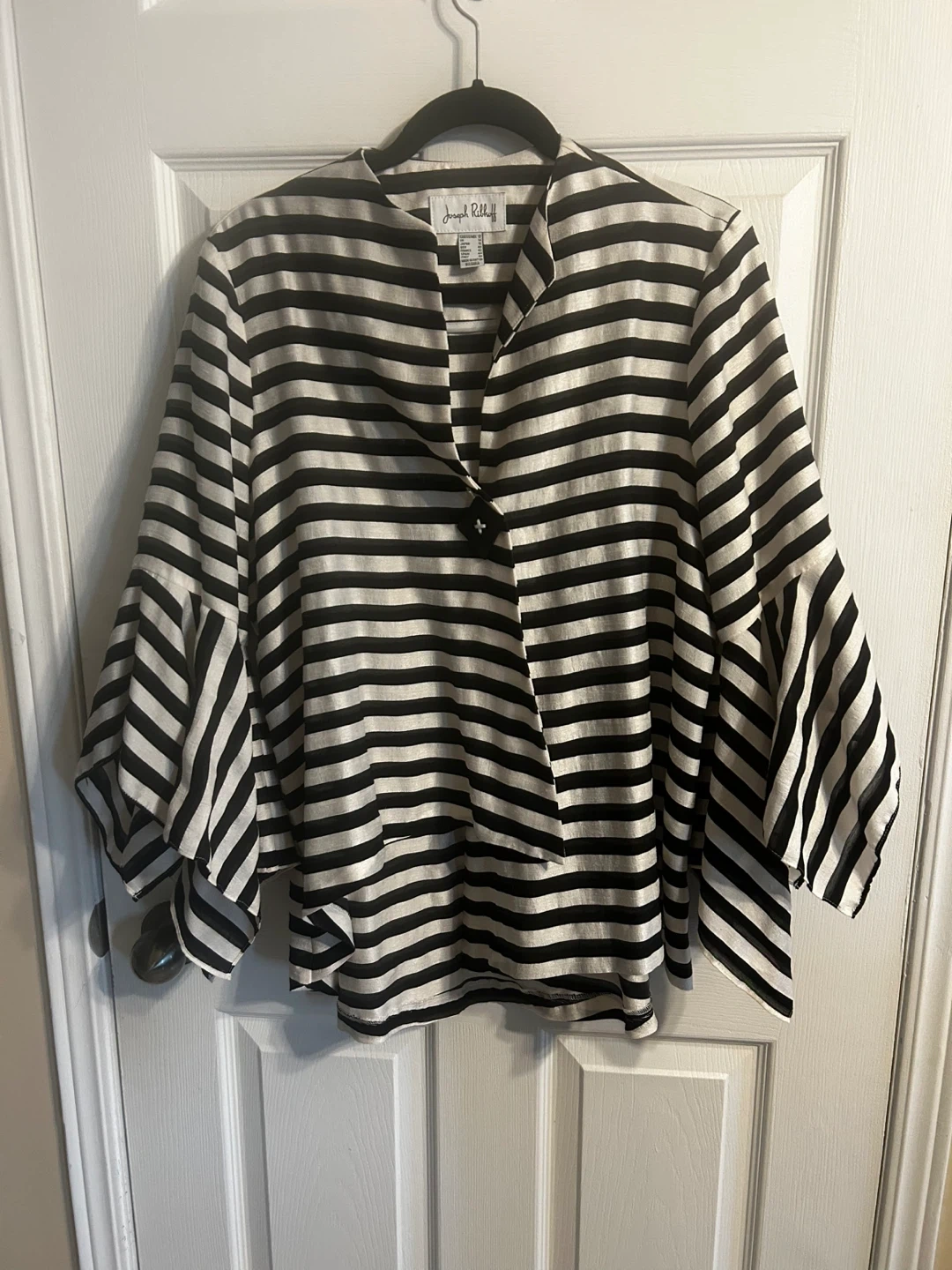 Joseph Ribkoff Black & White Striped Bell Sleeve Jacket Size 12