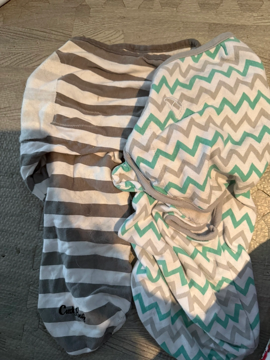 60One is striped and the other has a chevron pattern. Great for keeping your little one snug and secure. Only used for a short time.