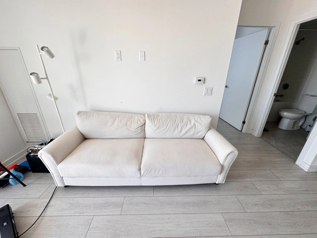 18This is a used sofa, perfect for adding comfort to any living space. The sofa is in good condition, ready to bring a cozy touch to your home. While it has been pre-loved, it still has plenty of life left and is looking for a new home! The estimated price for similar sofas on Kijiji ranges from $150 to $400 CAD. Given its condition, a fair price would be around $250. If the ad's up, it's up for grabs!
