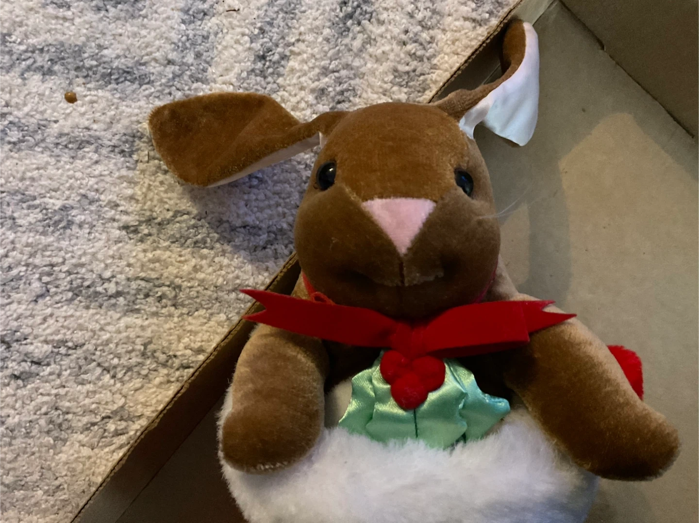 10A cute Velveteen Rabbit bunny plush toy nestled in a festive red stocking! Perfect for adding a touch of holiday cheer to any space. It's in great condition and ready to find a new home