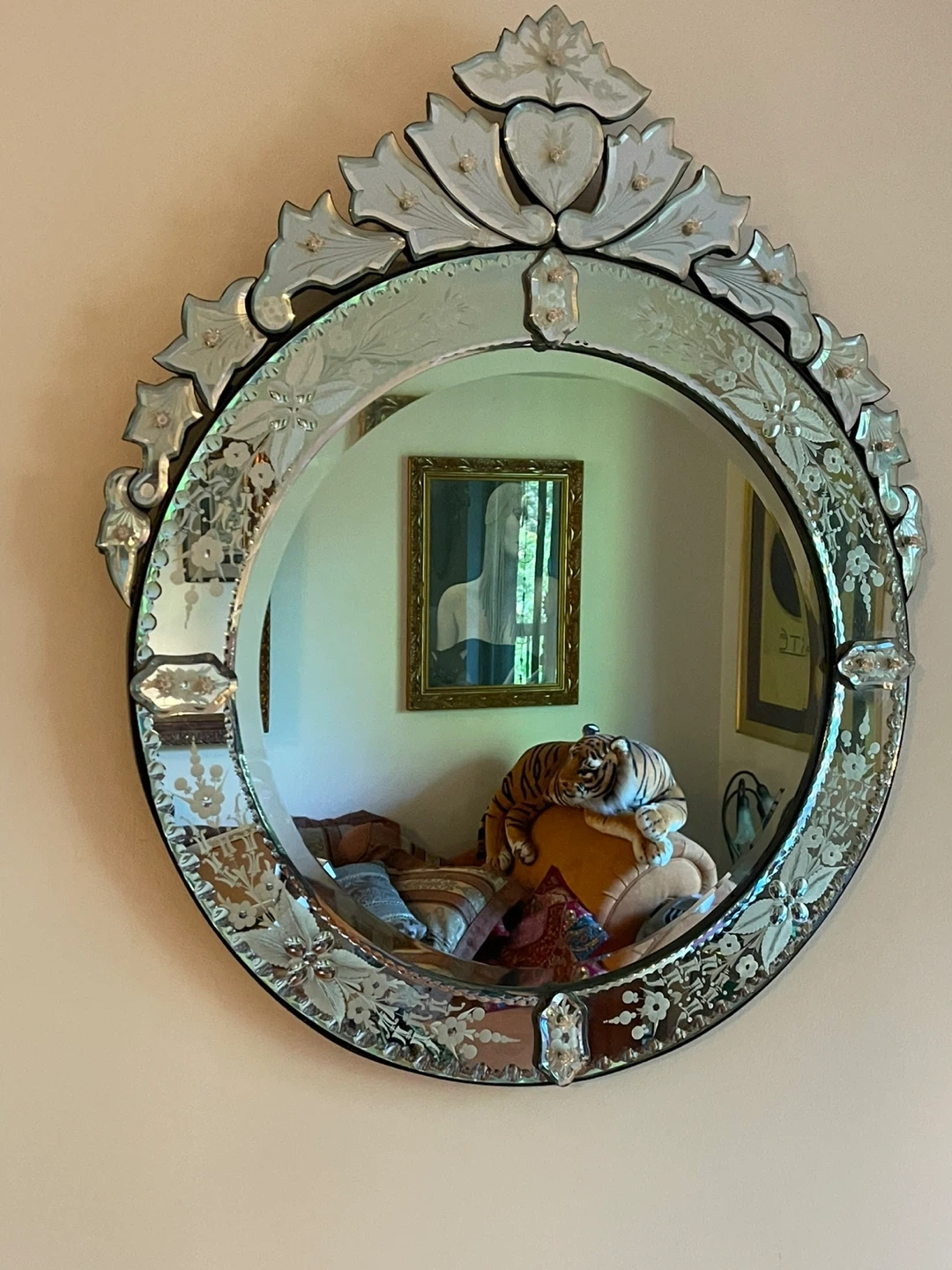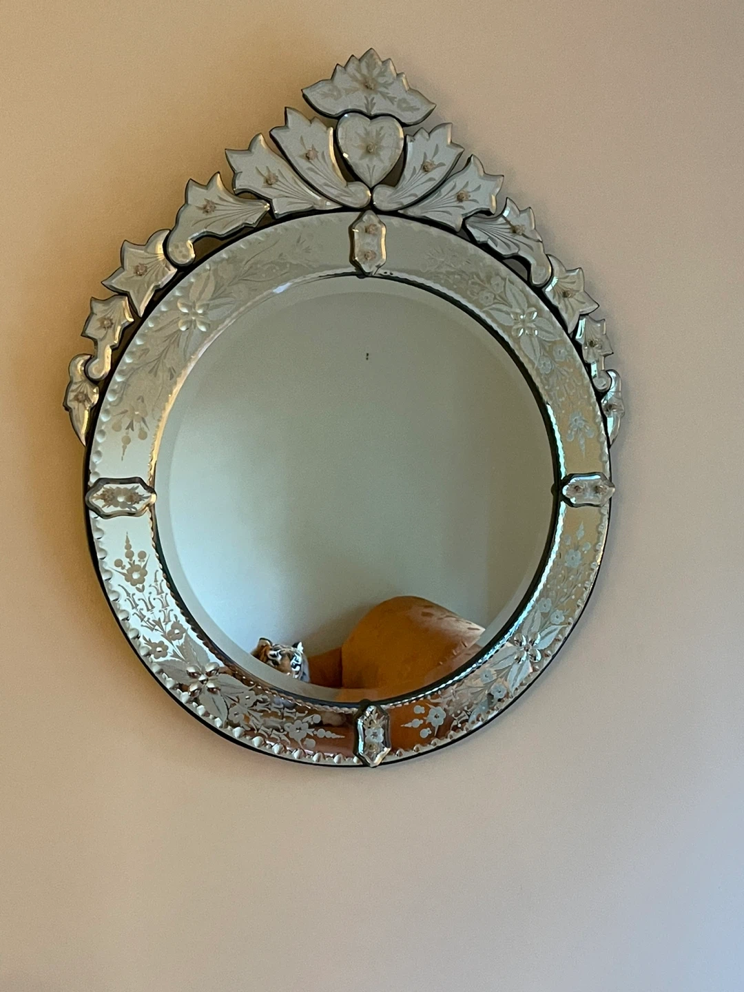 Selling a lovely Venetian-style round wall mirror. It features intricate detailing and a classic design. Perfect for adding a touch of elegance to any room