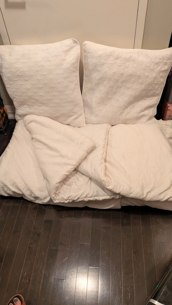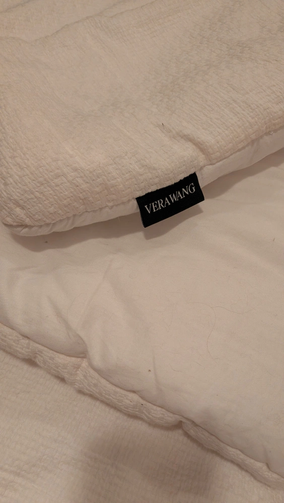 Great condition, no stains or marks. Pillows are not Vera Wang but do go well with comforter.