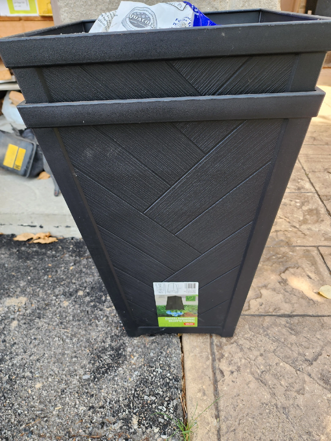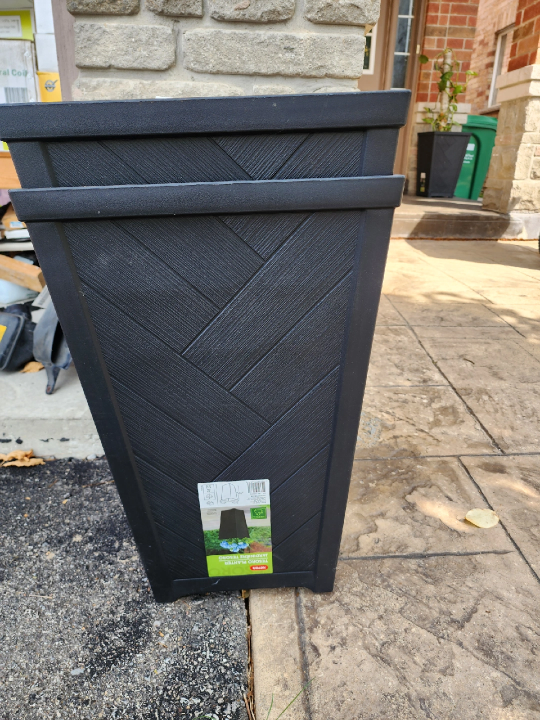 I'm selling a Veranda 20" black resin square tapered planter. It's in great shape and ready for your plants! Perfect for adding a touch of style to your garden or patio /