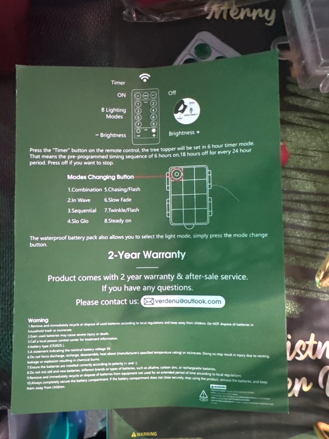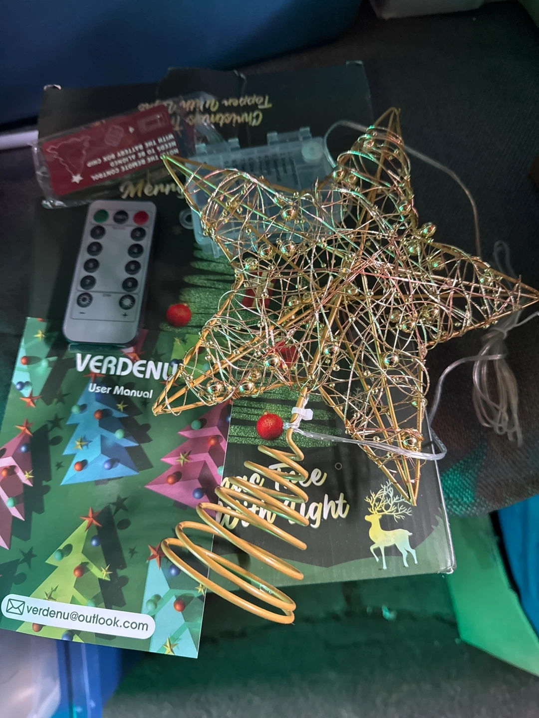 52Selling a Verdenu Christmas tree topper, complete with lights and a remote control! It features 8 lighting modes and a timer. The product comes with a 2-year warranty and after-sale service