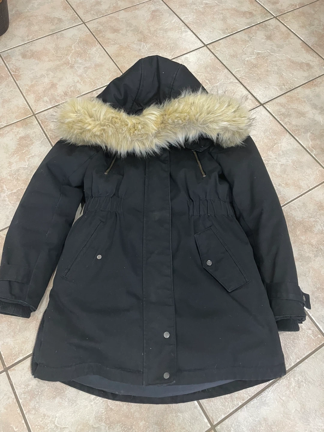 18A stylish black winter parka from Vero Moda perfect for staying warm during the colder months! It features a faux fur trim on the hood and a cinched waist for a flattering fit. Great for layering, this parka is sure to keep you cozy and chic all winter long