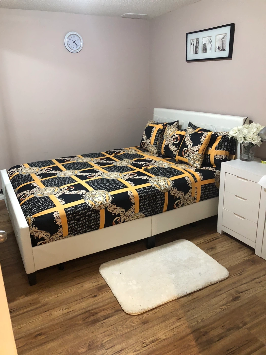 Selling a Versace bedding set. It features a black and gold design with the Versace logo. It will definitely add a touch of luxury to your bedroom! Just bed sheets no frame.