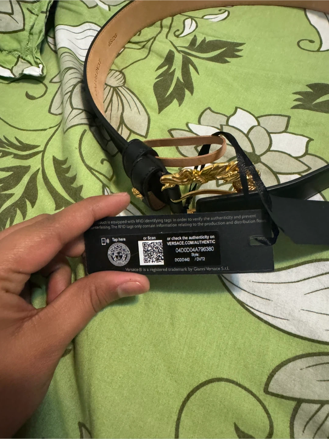10Selling a Versace black leather belt in size 65/26. It's in great condition and ready for a new home!