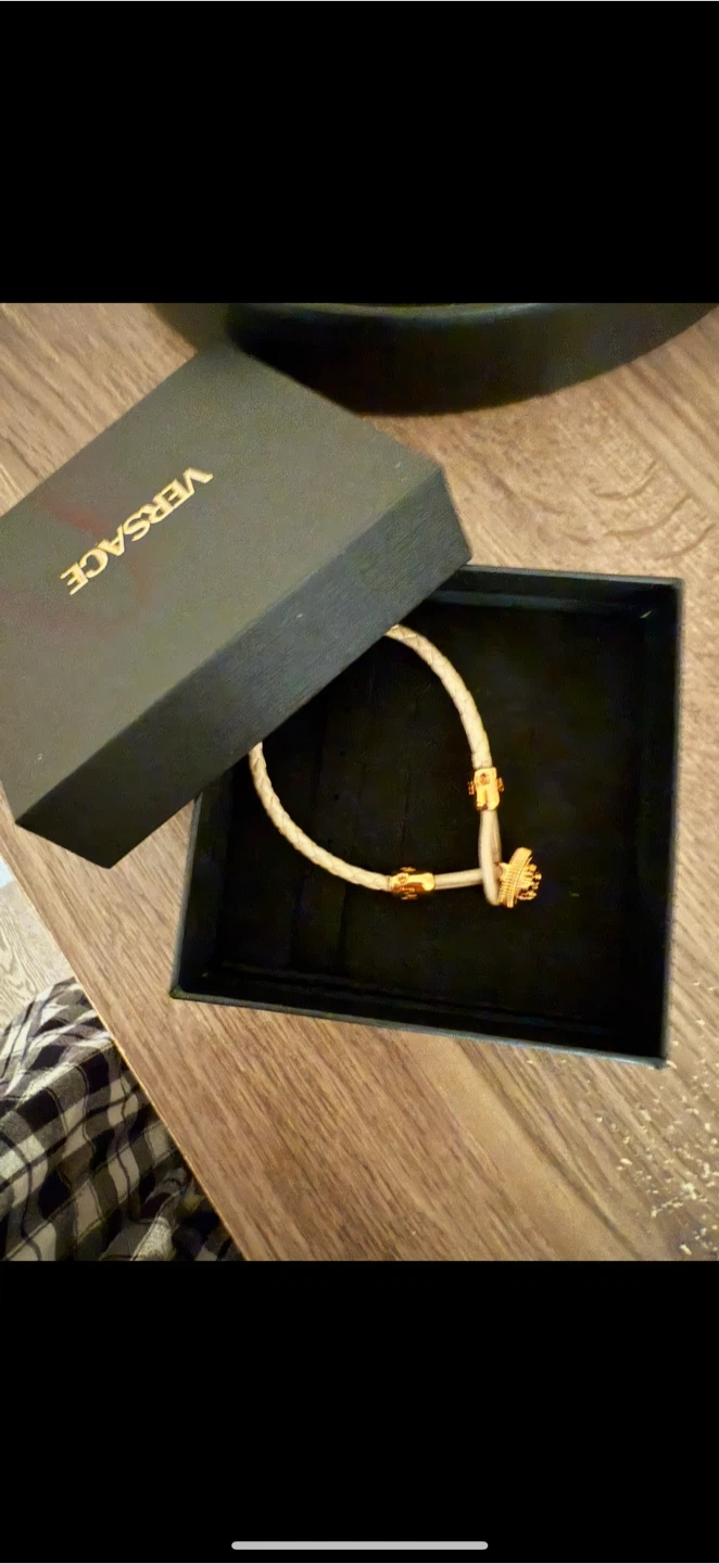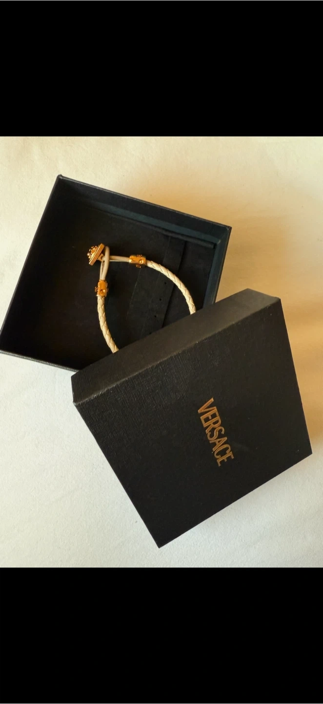 10Selling a stylish Versace braided leather bracelet. It comes with its original box. This bracelet is perfect for adding a touch of luxury to any outfit!