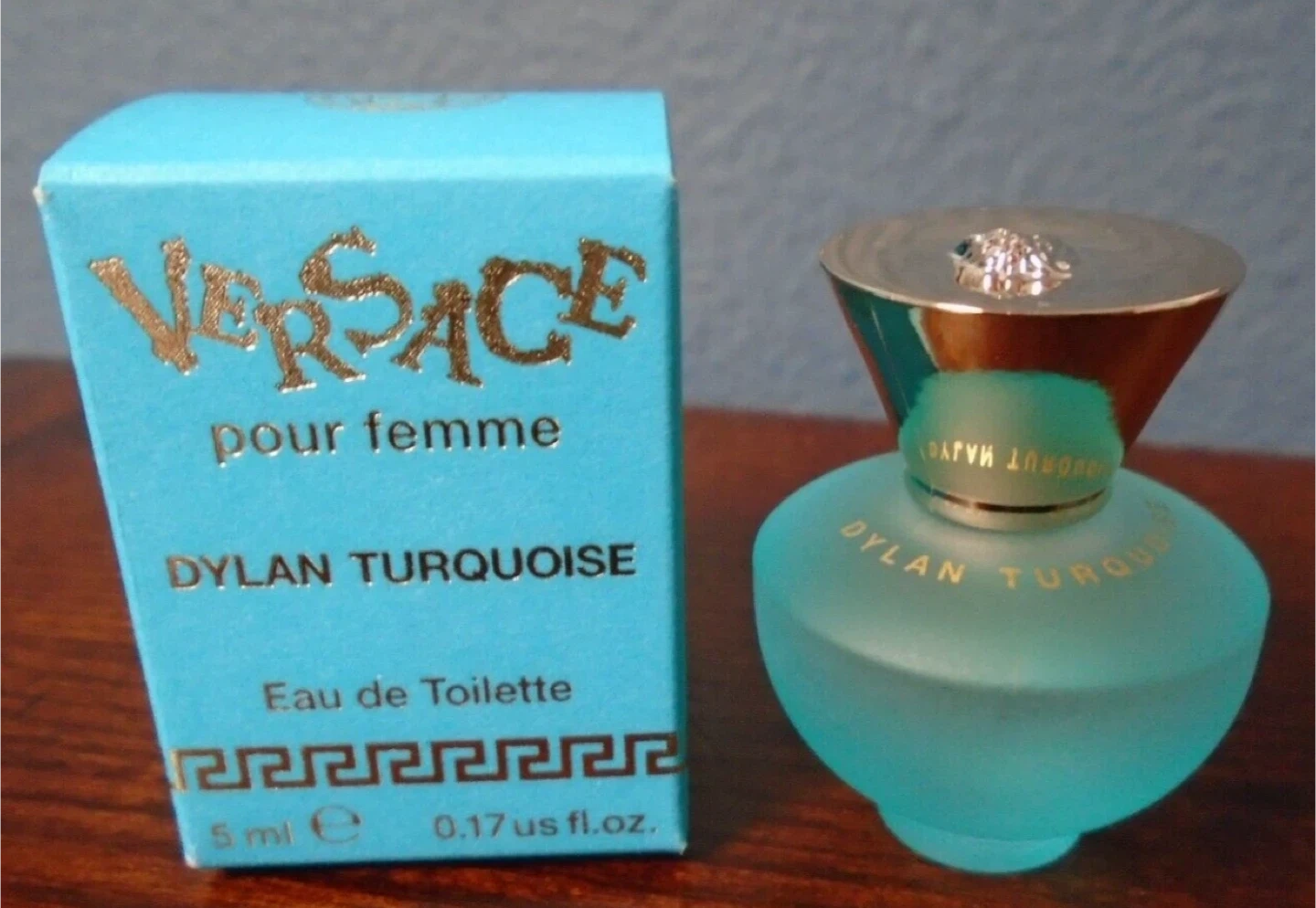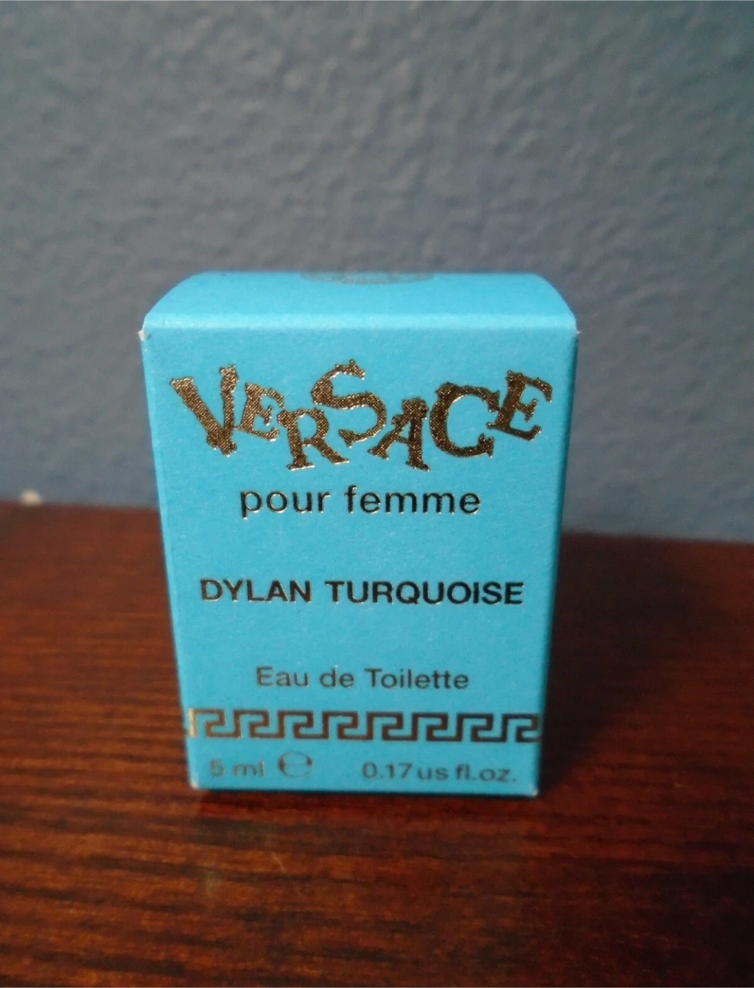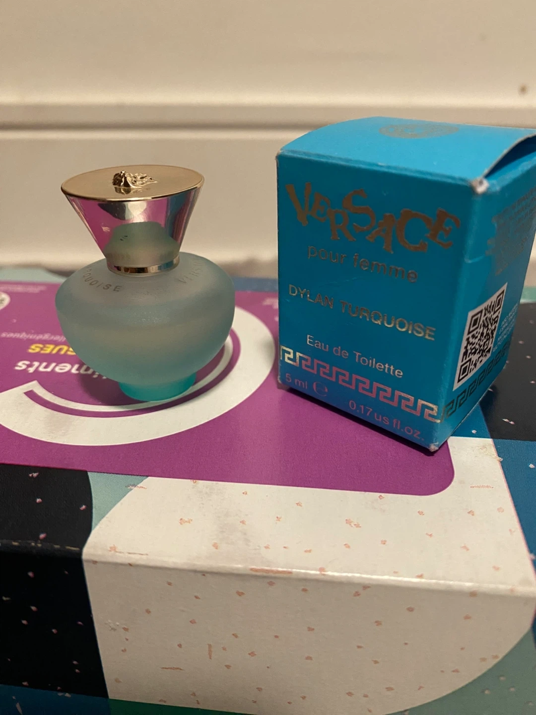 132Selling a Versace Dylan Turquoise Eau de Toilette (Mini). This is a 5ml bottle, perfect for trying out the scent or for travel. It comes in its original box. A fresh and light fragrance for everyday wear! Barely used. Cash only