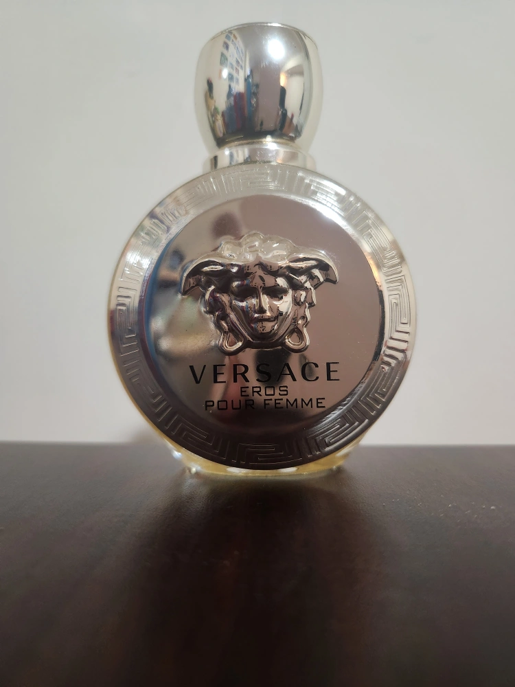 Selling a 50mL bottle of Versace Eros Pour Femme perfume. It has a citrus, white floral, woody, musky, floral, fresh, fresh spicy, powdery, aromatic, and amber scent profile. Perfect for everyday wear or a special occasion! Box not included.