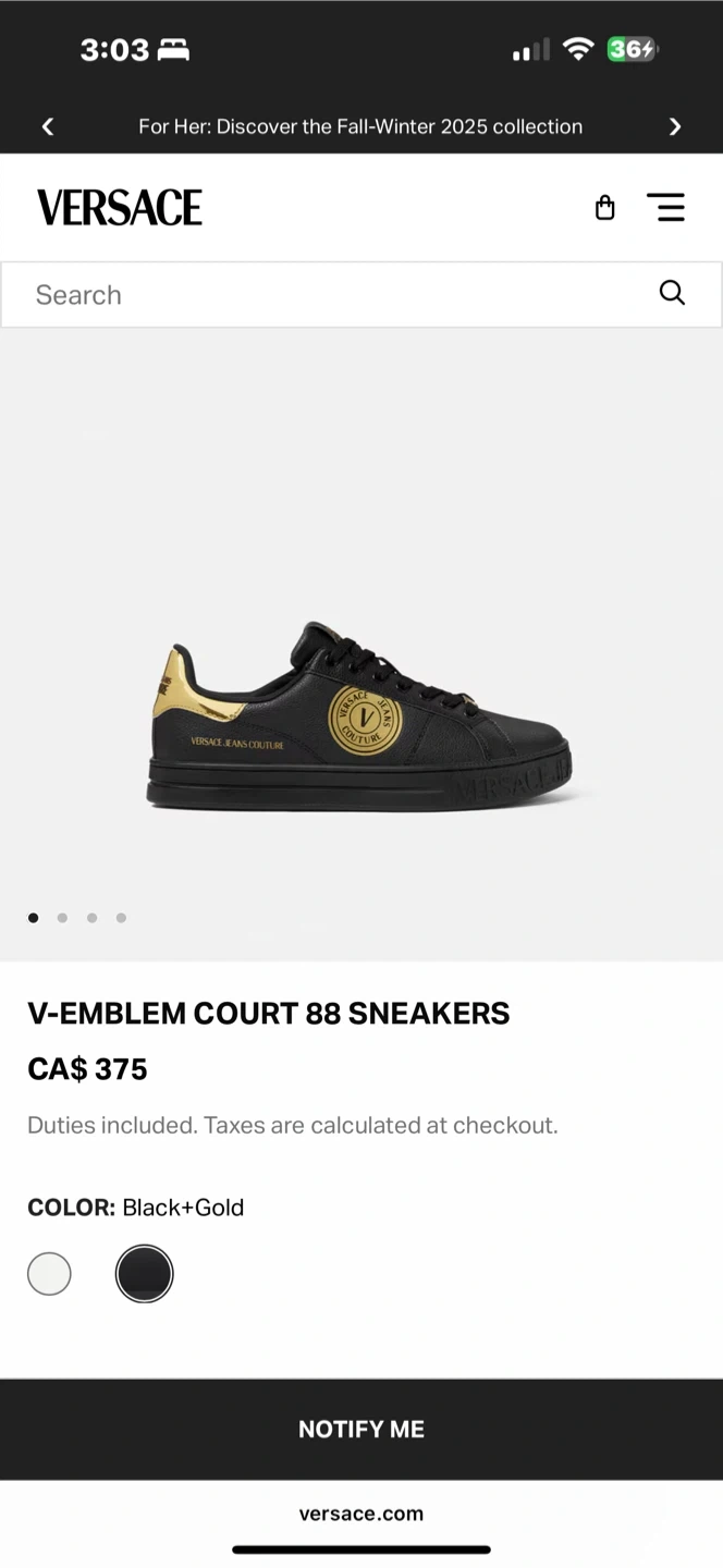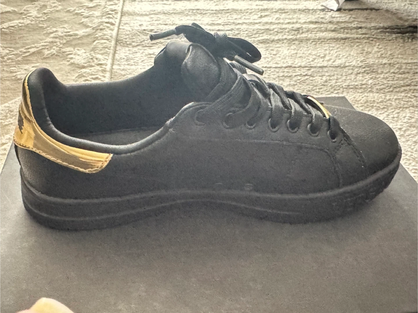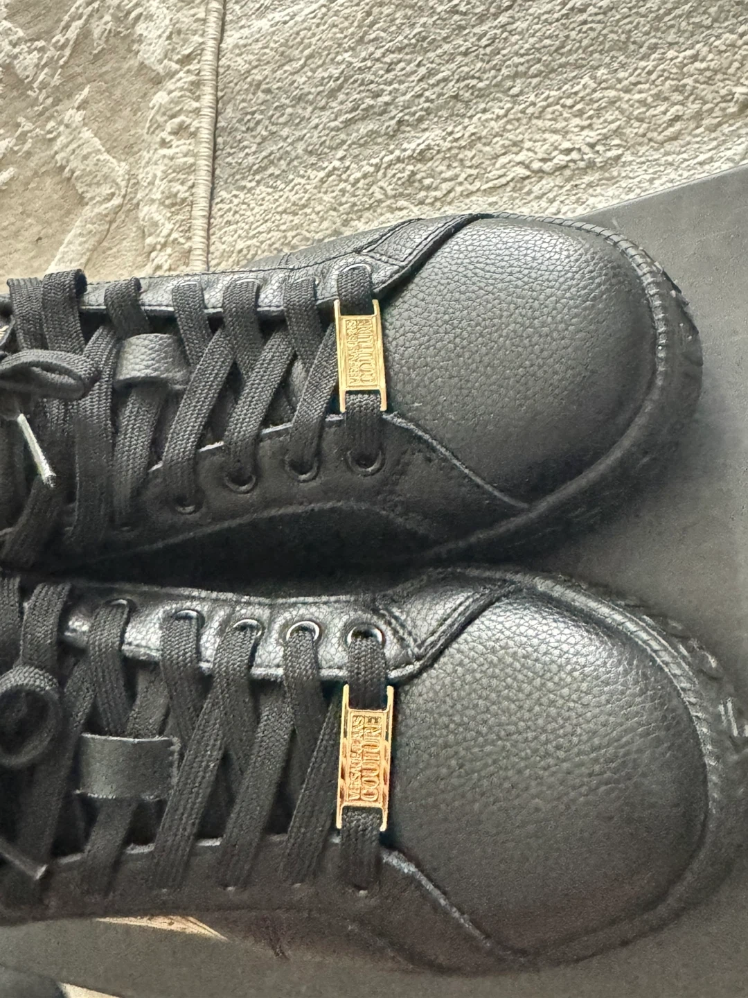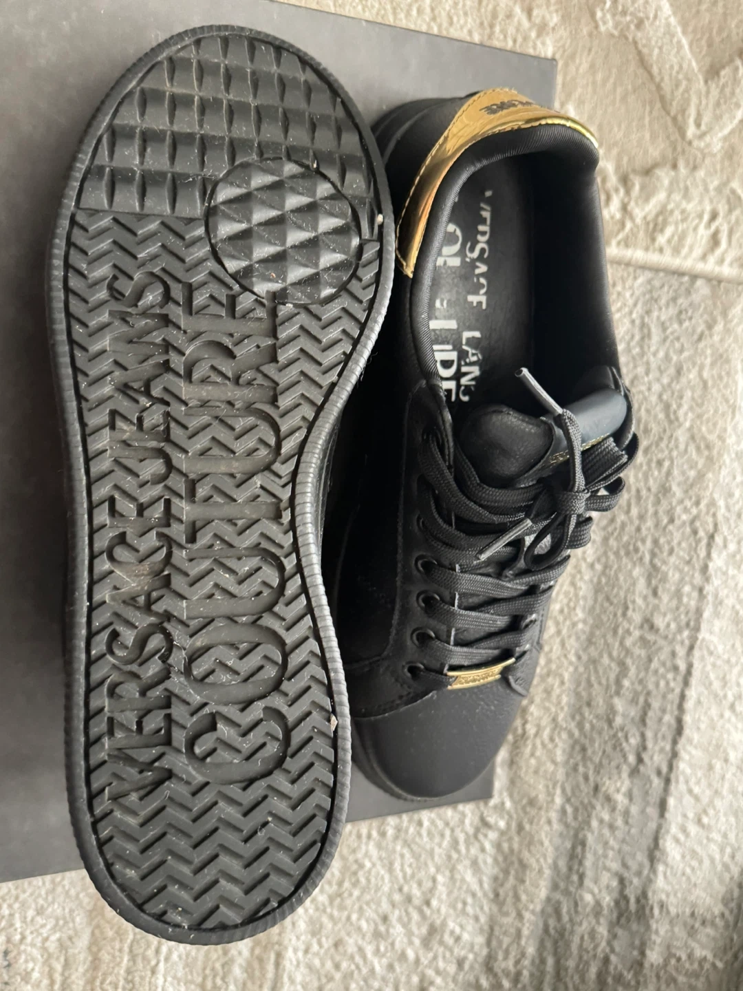 Selling a pair of Versace Jeans Couture V-Emblem Court 88 sneakers in black and gold! These stylish sneakers come with the original box and are in great condition. Originally bought for CA$400, they're a real steal