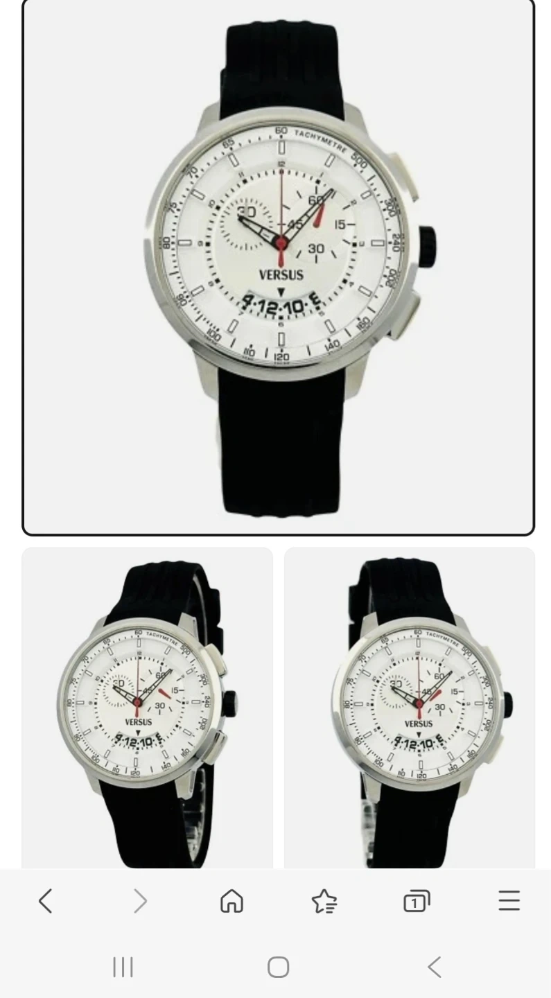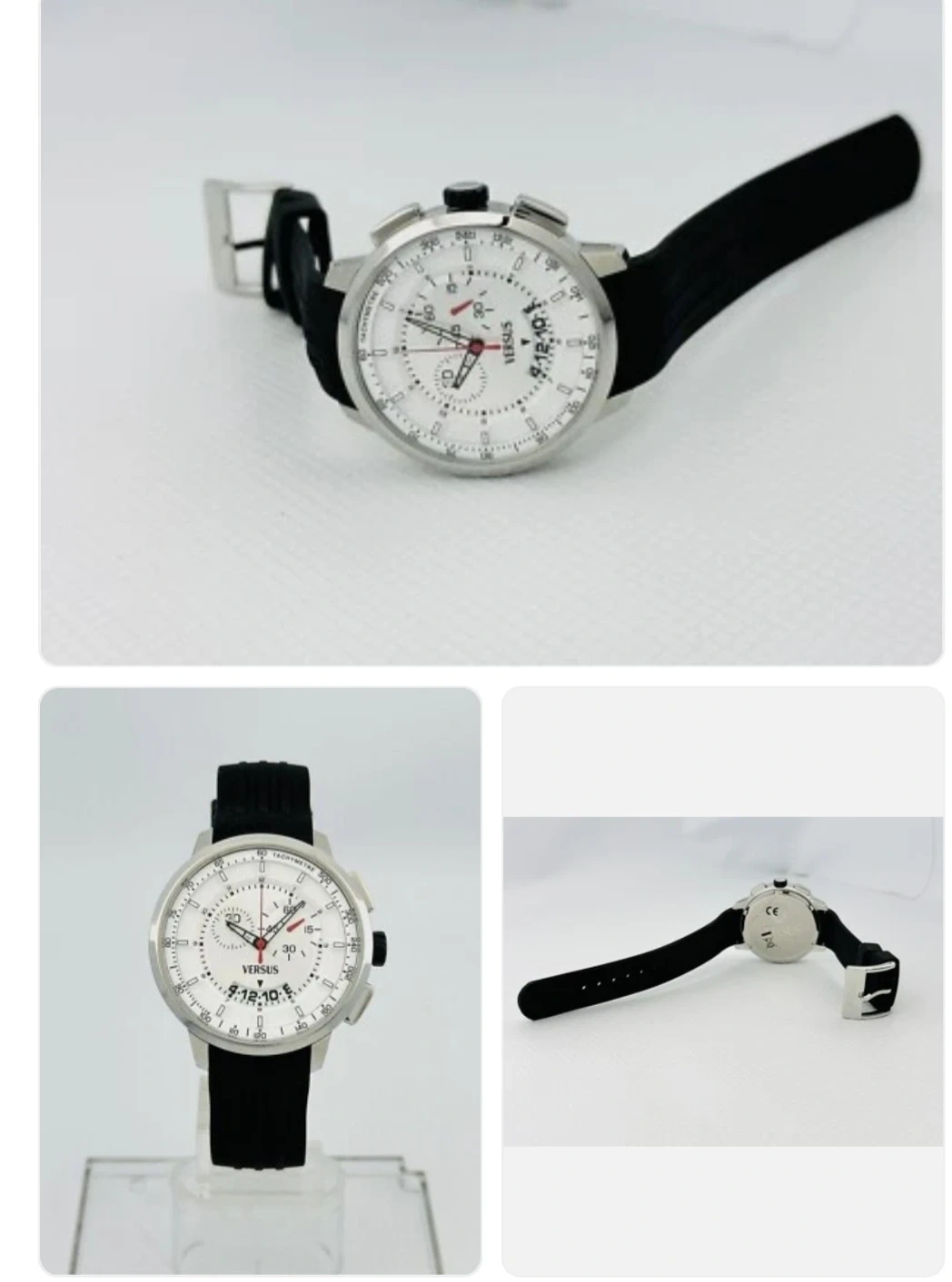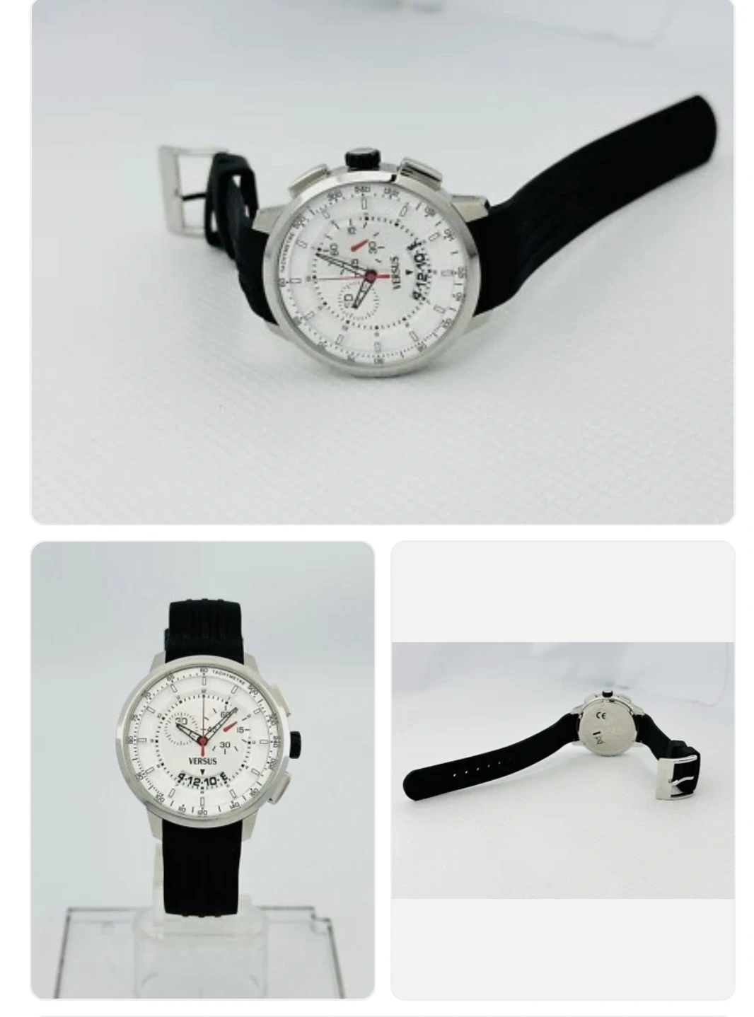0Selling a Versus Versace chronograph watch. It features a white face with chronograph dials and a black band. It's in great condition and ready for a new home!