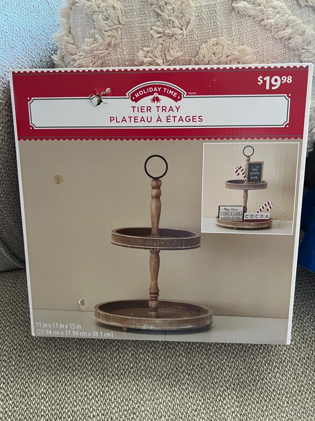 Selling a brand new Holiday Time Tier Tray! It's still in its original packaging. The box says it's 11 in x 11 in x 15 in (27.94 cm x 27.94 cm x 38.1 cm). Originally bought for $19.98!