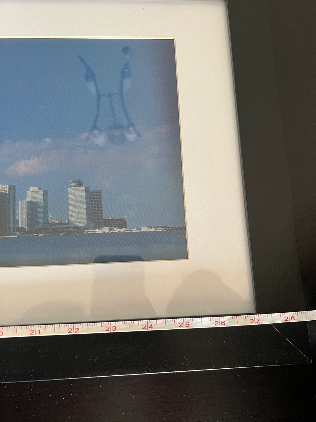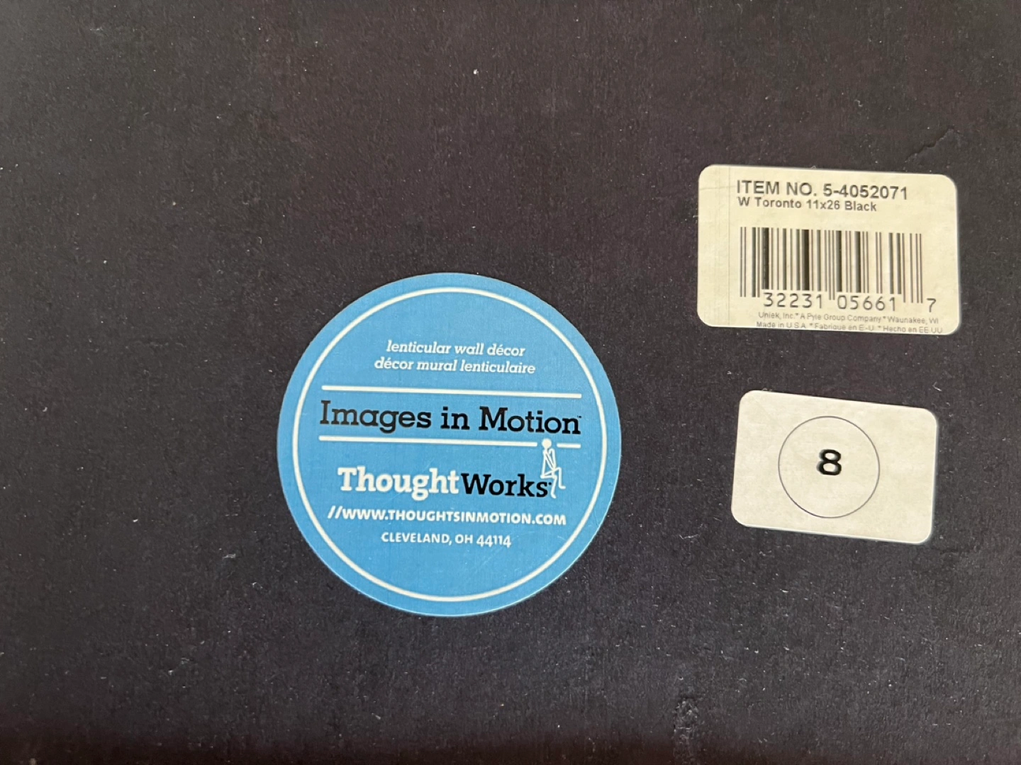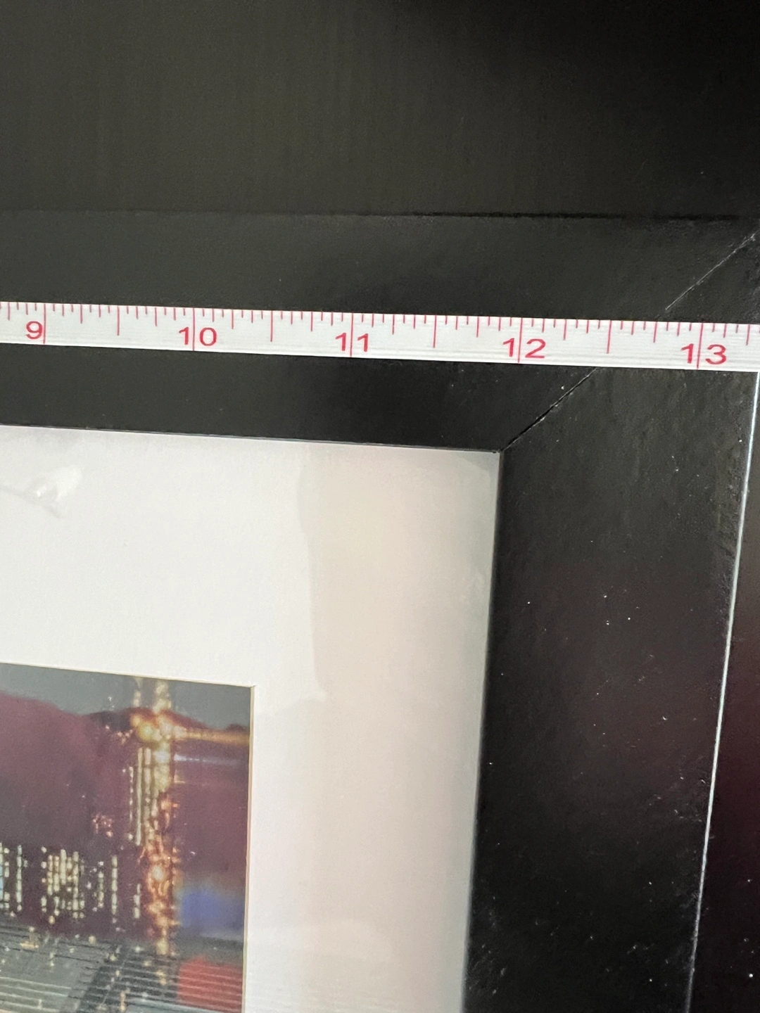 Framed lenticular wall art. Features a panoramic view of the Toronto skyline at sunset. Black frame with white matting. Excellent condition.