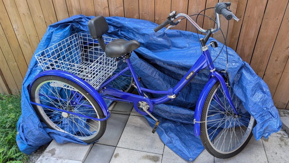 This is the only bike I found in the yard. I even ask chaptGPT for help writing a post and this is what I got and a reasonable price for it: Adult Tricycle – VEVOR 3-Wheel Bike with Large Rear Basket – Excellent Condition! Selling a gently used VEVOR adult tricycle in excellent condition. Perfect for adults, seniors, or anyone looking for a stable and comfortable ride. Only lightly used and always stored under cover (as shown in photo). Features: Sturdy 3-wheel design – great balance and support Large rear cargo basket – ideal for groceries, bags, or pets Comfortable wide seat with backrest Smooth single-speed pedal system – easy to ride Durable steel frame with vibrant blue paint 26” wheels for smooth city or trail riding Condition: Like new – tires, brakes, frame, and seat all in great shape Kept covered and protected from the weather No assembly needed – ready to ride! Self pickup in Pickering. Message if interested or if you have questions!