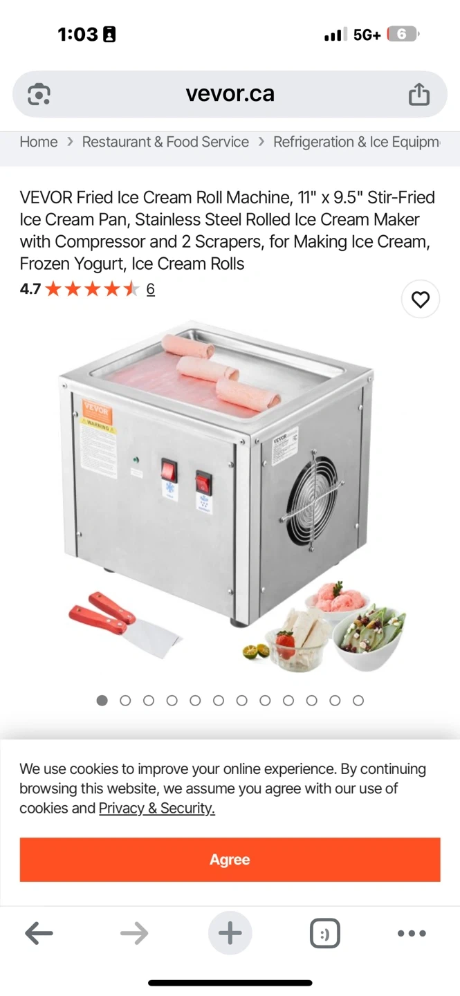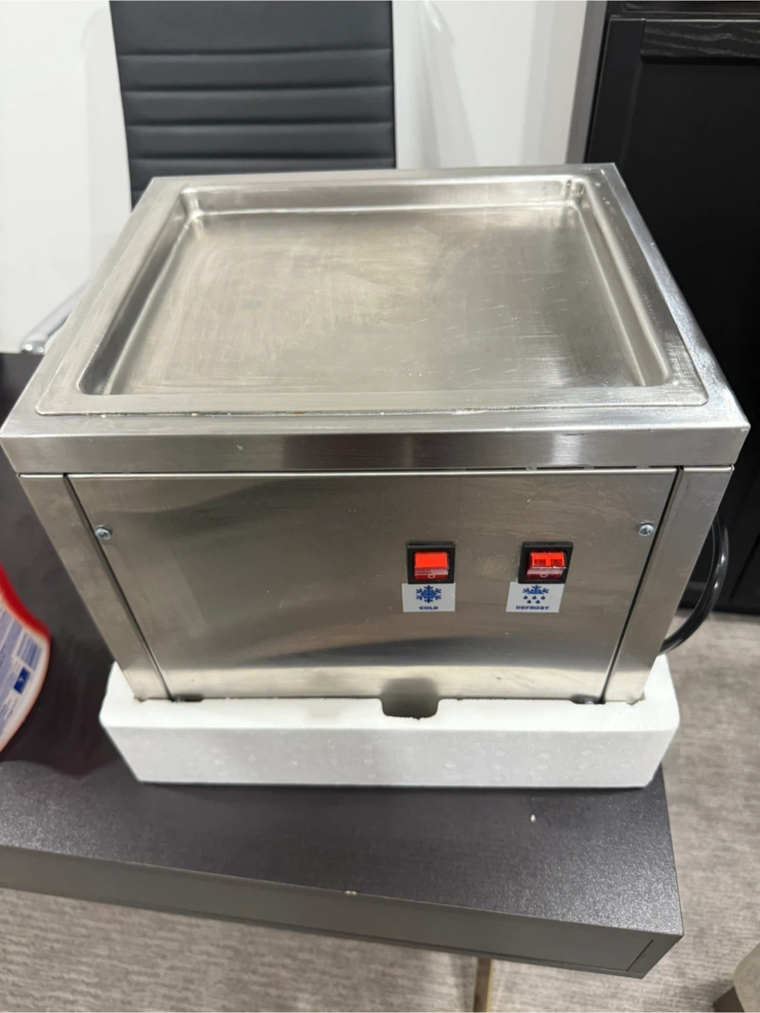 Selling a VEVOR fried ice cream roll machine. This is a small commercial machine we used for training prior to opening our business. It would be great for birthday parties and fundraisers. great condition in box and ready to make some delicious treats! This model features a stainless steel rolled ice cream maker pan. Perfect for making ice cream, frozen yogurt, and ice cream rolls at home!