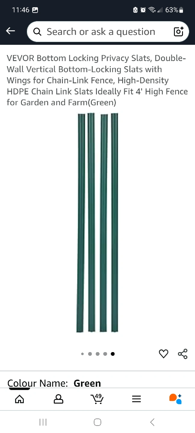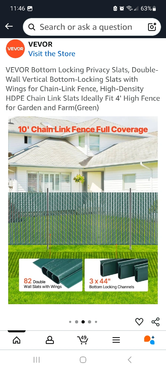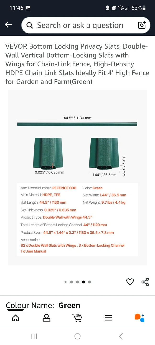 Looking to add some privacy to your chain link fence? I'm selling VEVOR bottom locking privacy slats in green. They're designed for a 4-foot high fence and are made of high-density HDPE. These slats are easy to install and will give you full coverage for your 10' chain link fence. Each slat measures 44.5" x 1.44" x 0.3". You'll get 82 double wall slats with wings and 3 bottom locking channels.