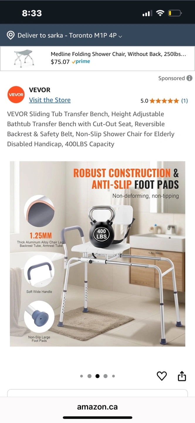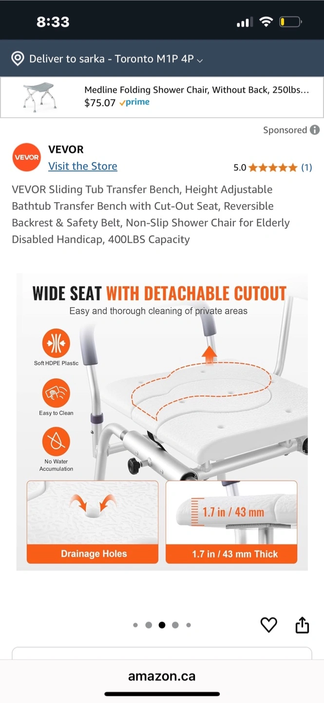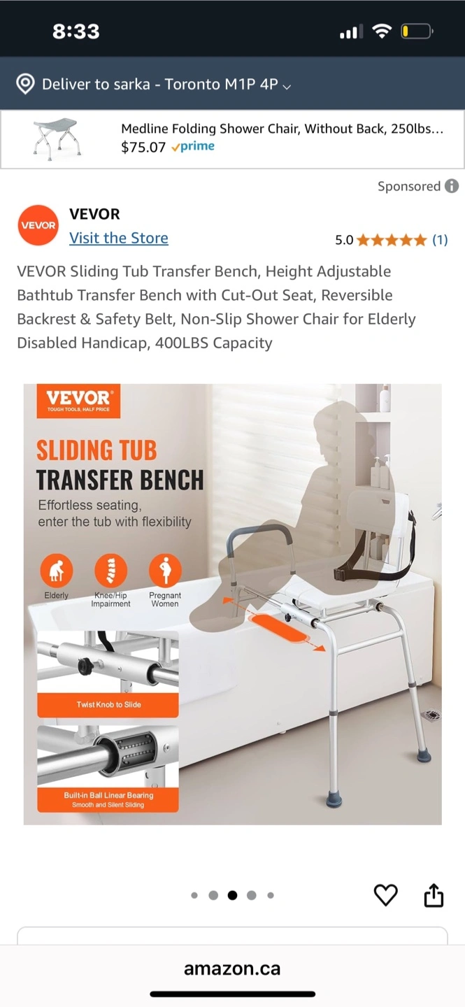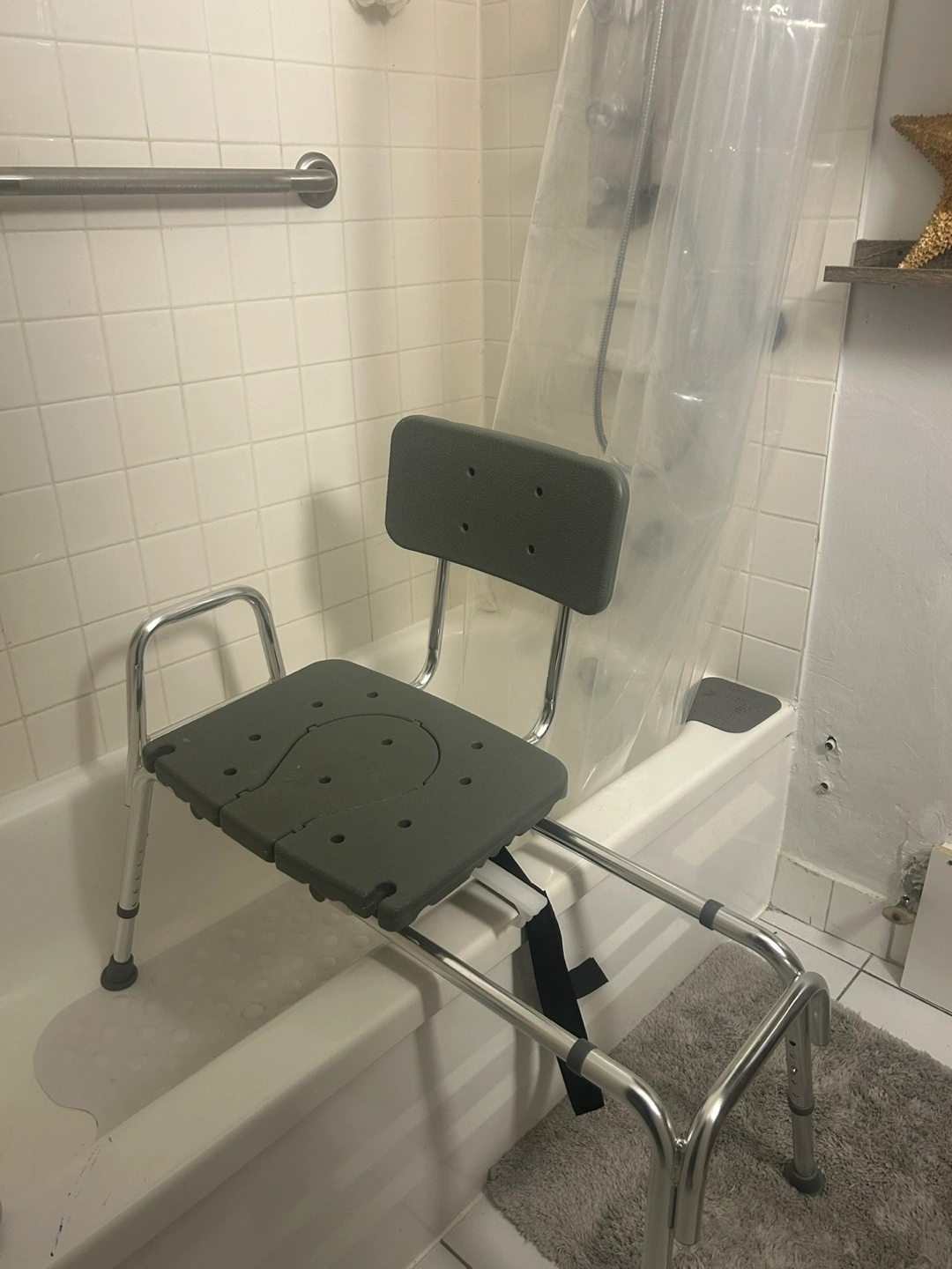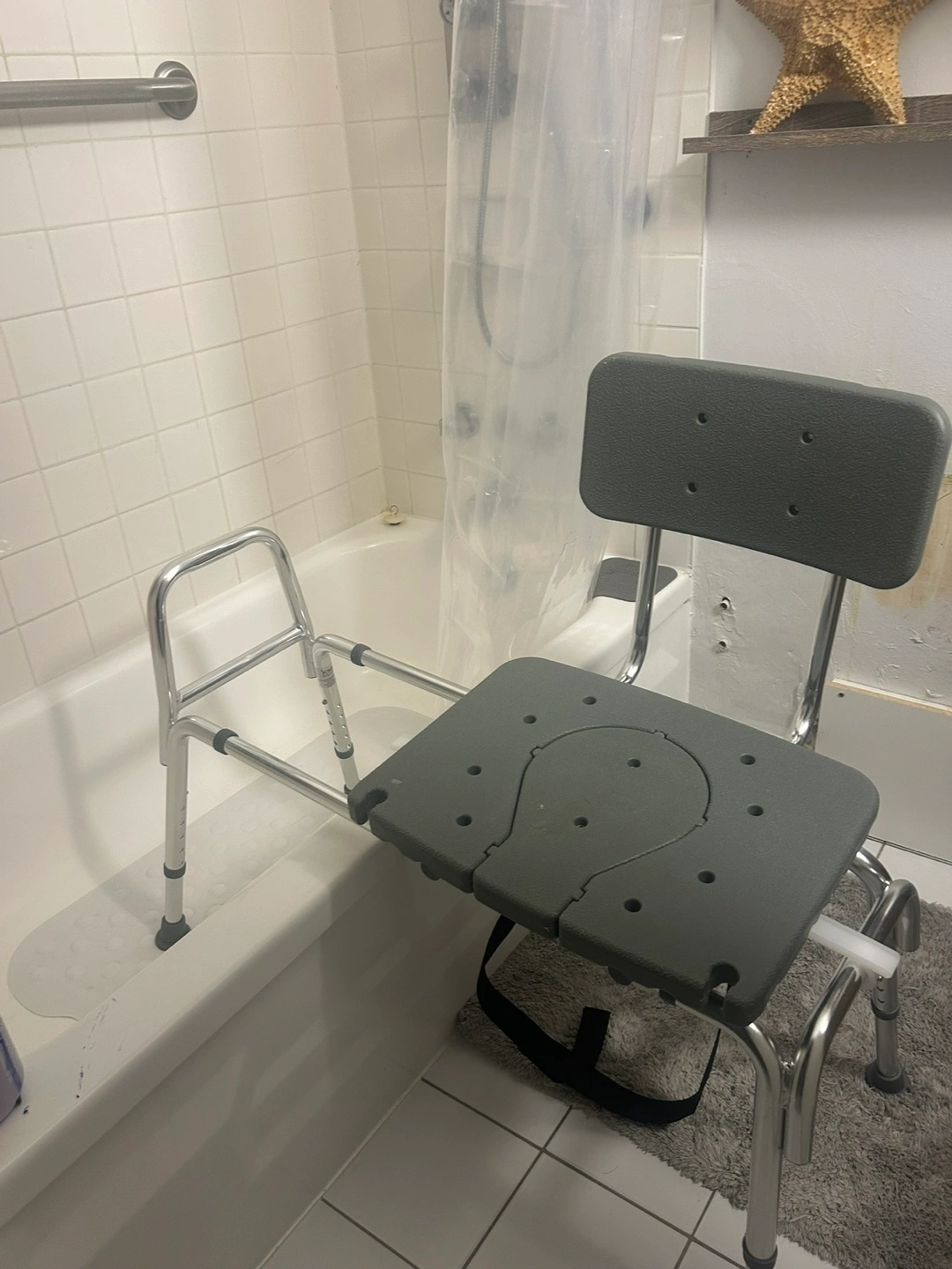 17Selling a VEVOR sliding bathtub transfer bench. It features: - Height adjustable - Cut-out seat - Reversible backrest & safety belt - Non-slip shower chair - 400 LBS capacity Perfect for elderly or those with limited mobility!